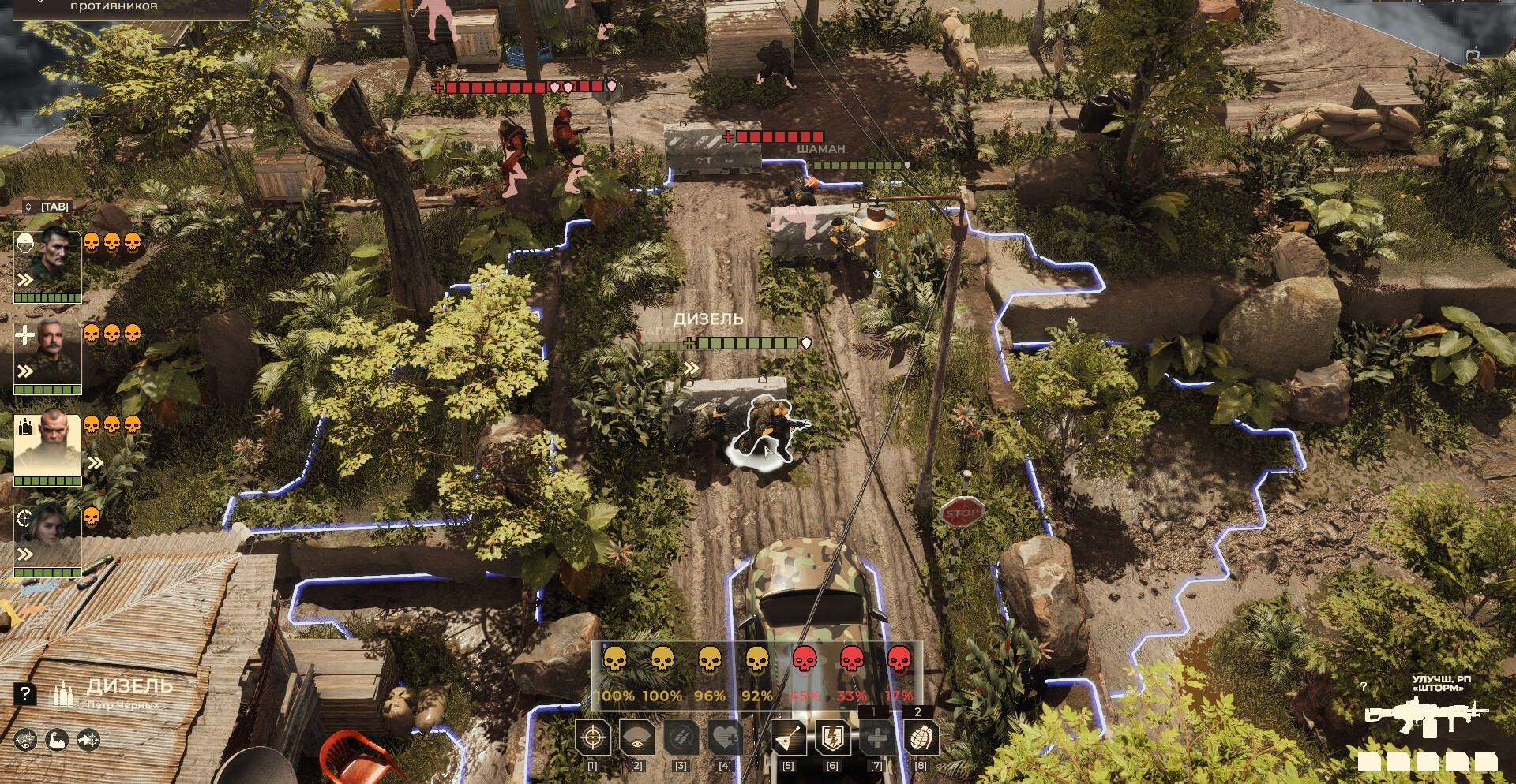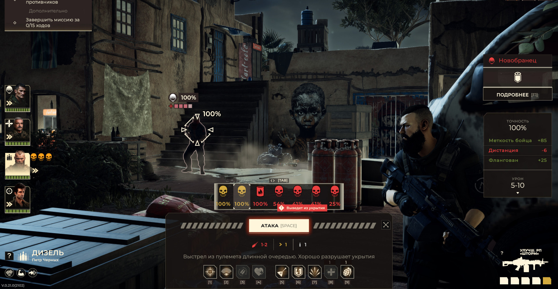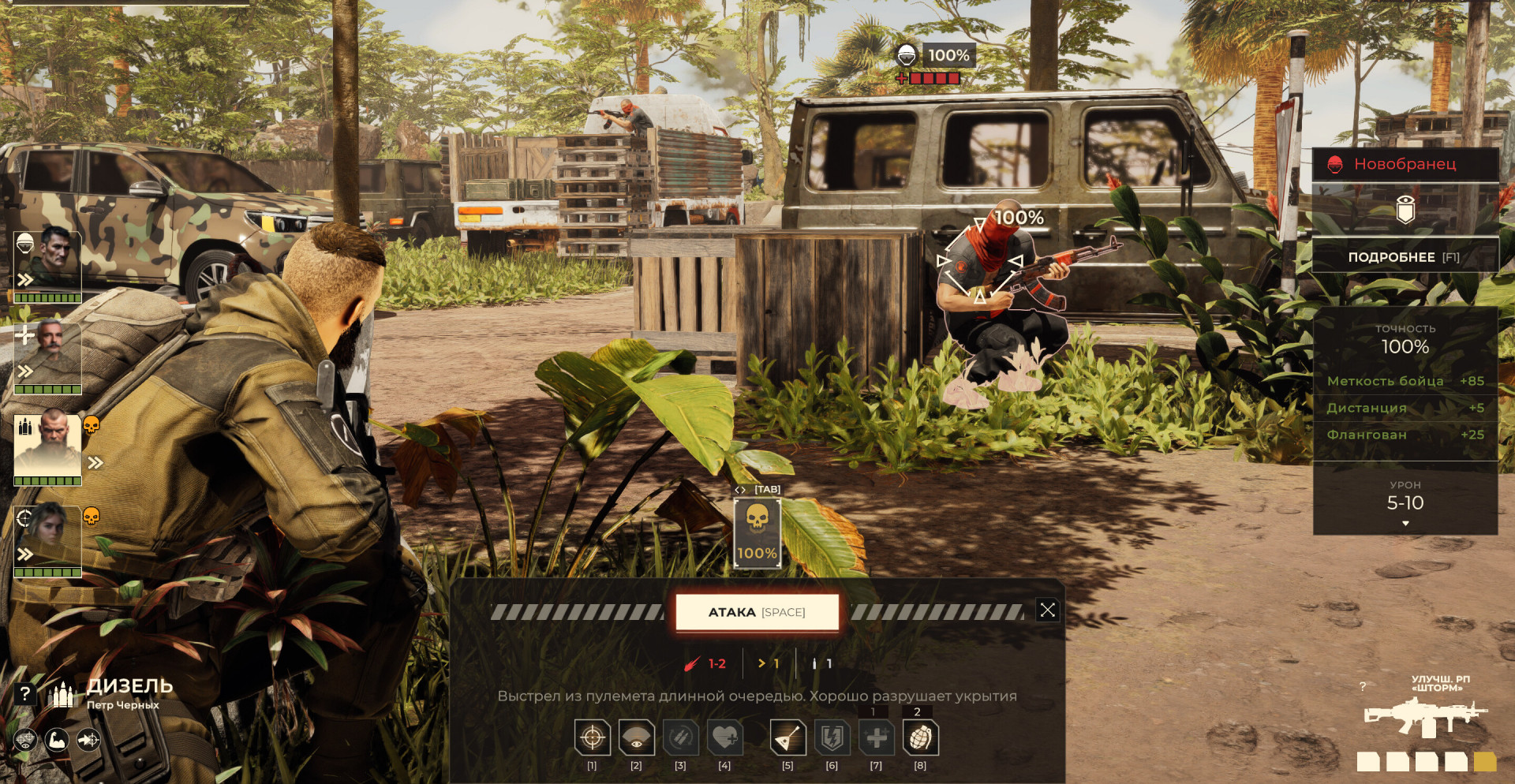 Пошаговые тактические бои без случайных промахов и с честной баллистикой.