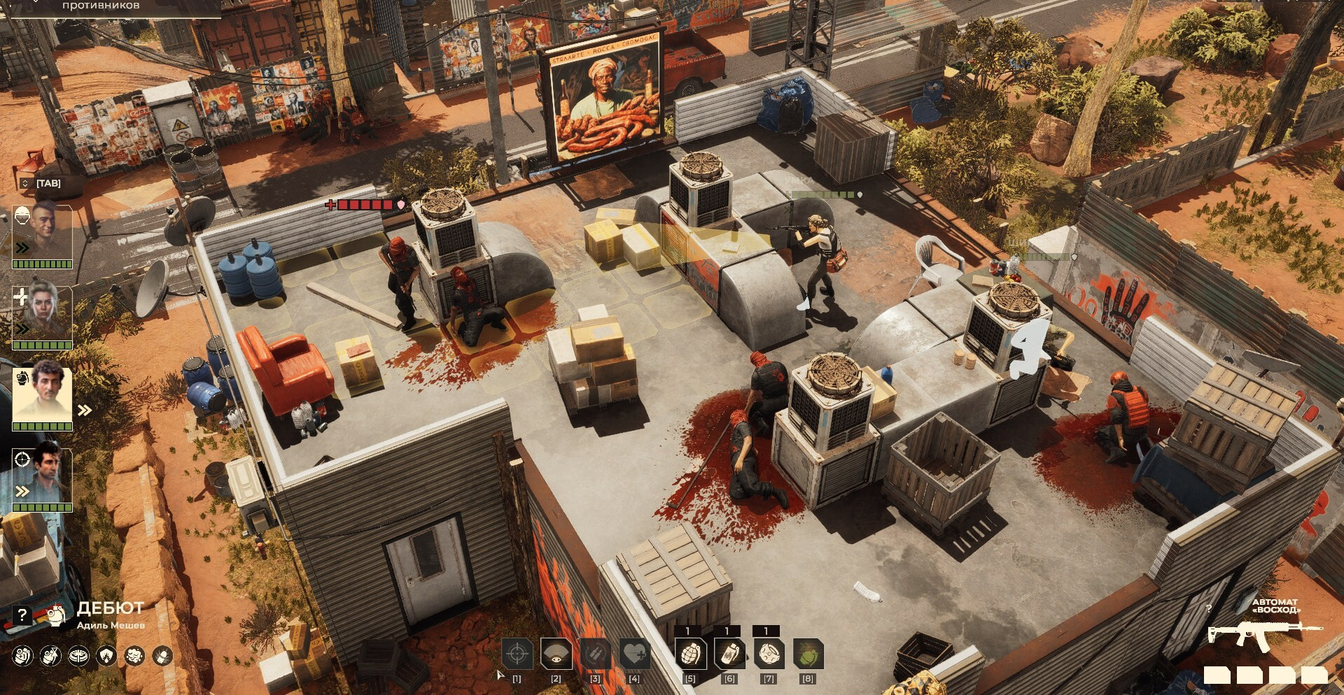 Мир погрузился в анархию: организация «Даамат» захватила власть на огромных территориях. Правительства рушатся, а города превращаются в зоны боевых действий. Только ваш отряд способен изменить баланс сил. Тактические сражения требуют внимания к деталям — от выбора укрытий и траектории пуль до распределения ролей между бойцами. Одна ошибка может стоить жизни. Ваша сила — стратегия, а не случай.
