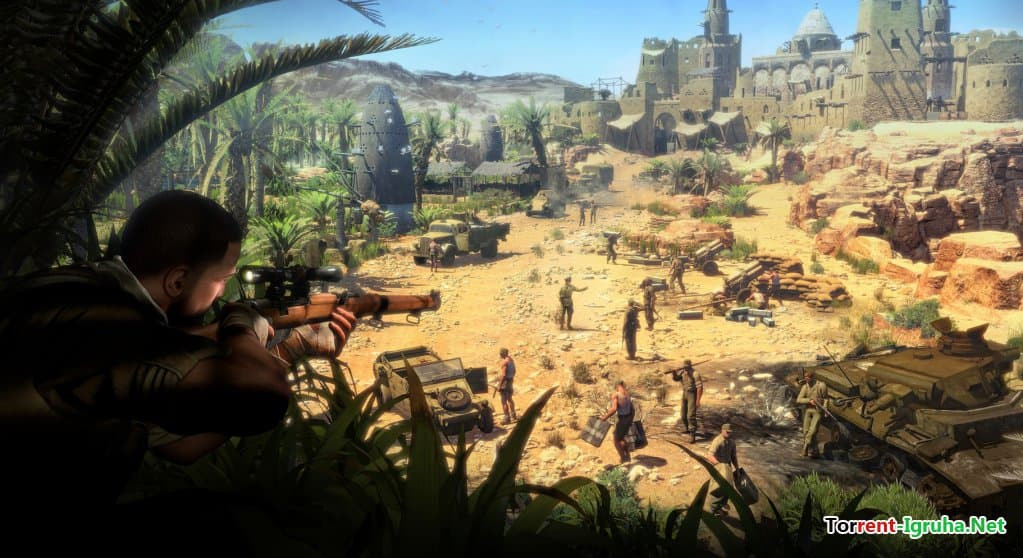 Стратегия и тактика проявлены в этом шутере во всех элементах, не позволяя забывать об их важности во время ведения боевых миссий. Чтобы стать участником событий на фронтах Второй Мировой, игроку достаточно скачать торрент Снайпер Элит 3, события в котором предшествуют происходившим во второй части игры. Главное действующее лицо – Карл Фэирбёрн, агент, состоящий на службе в спецотряде США и имеющий за своими плечами немало успешно выполненных заданий. Но востребованность в услугах агента имеется всегда, и потому перед Карлом поставили новую задачу, для решения которой ему предстоит отправиться в одно из пустынных поселений Ливии, в город Тобрук.