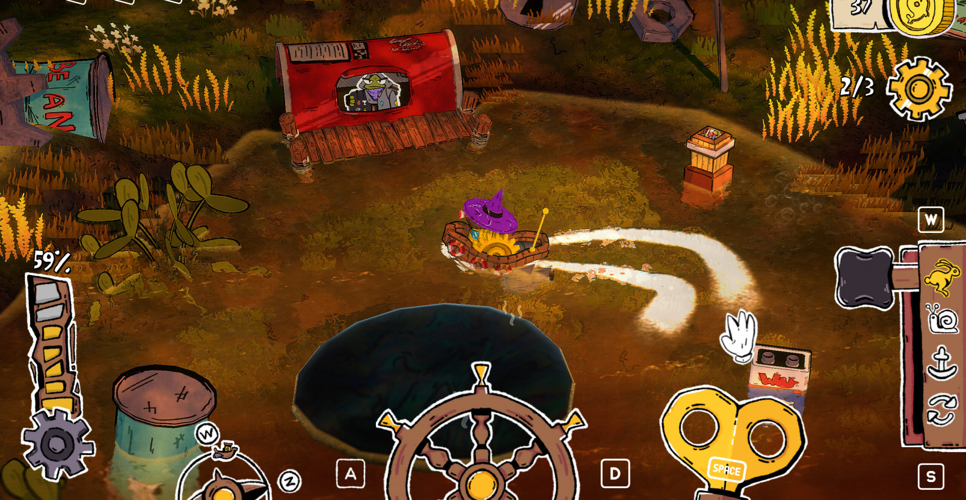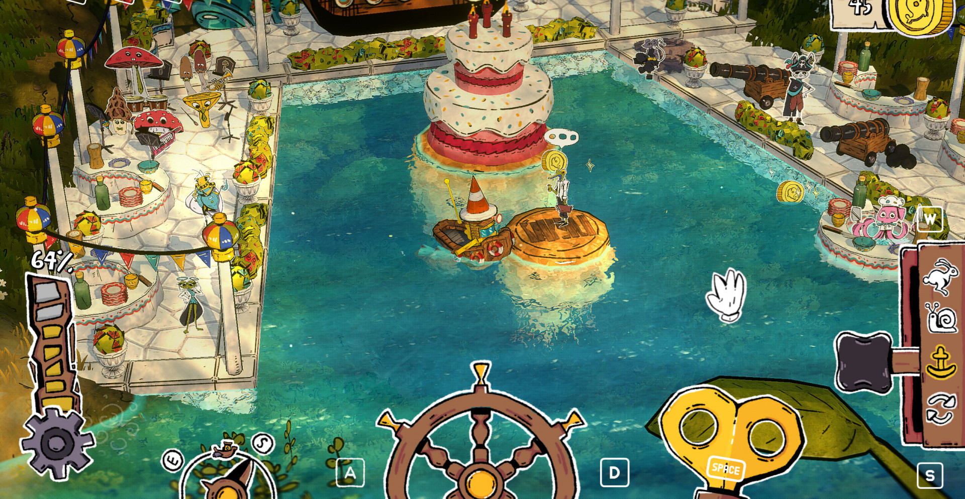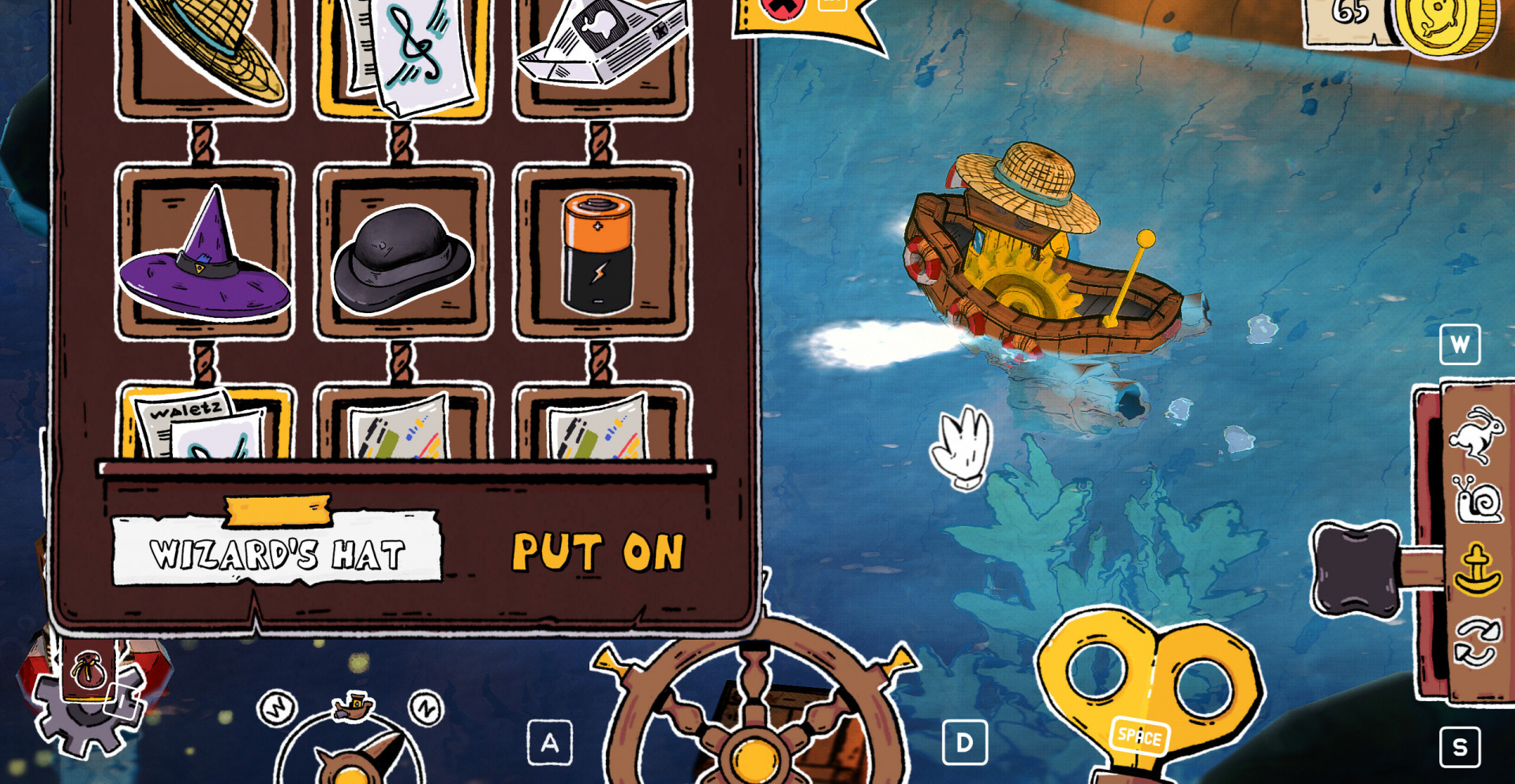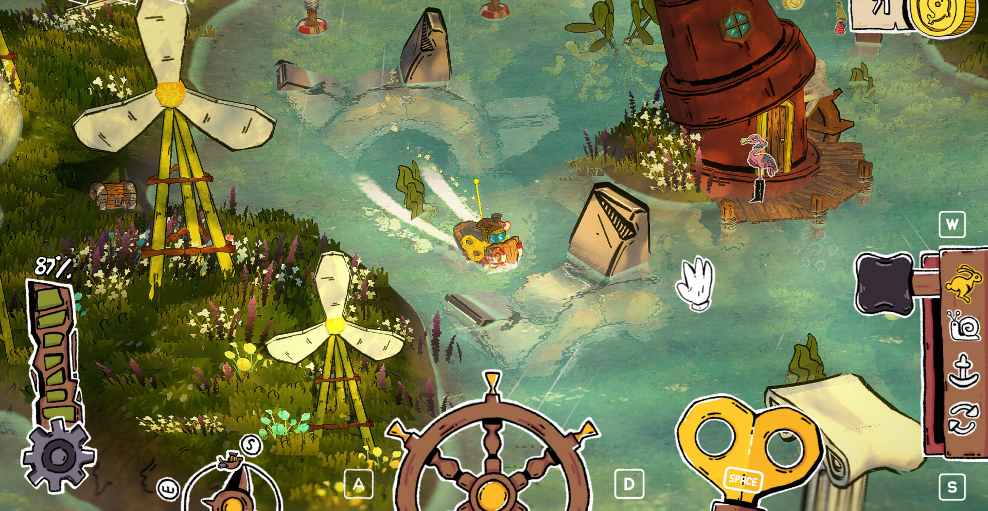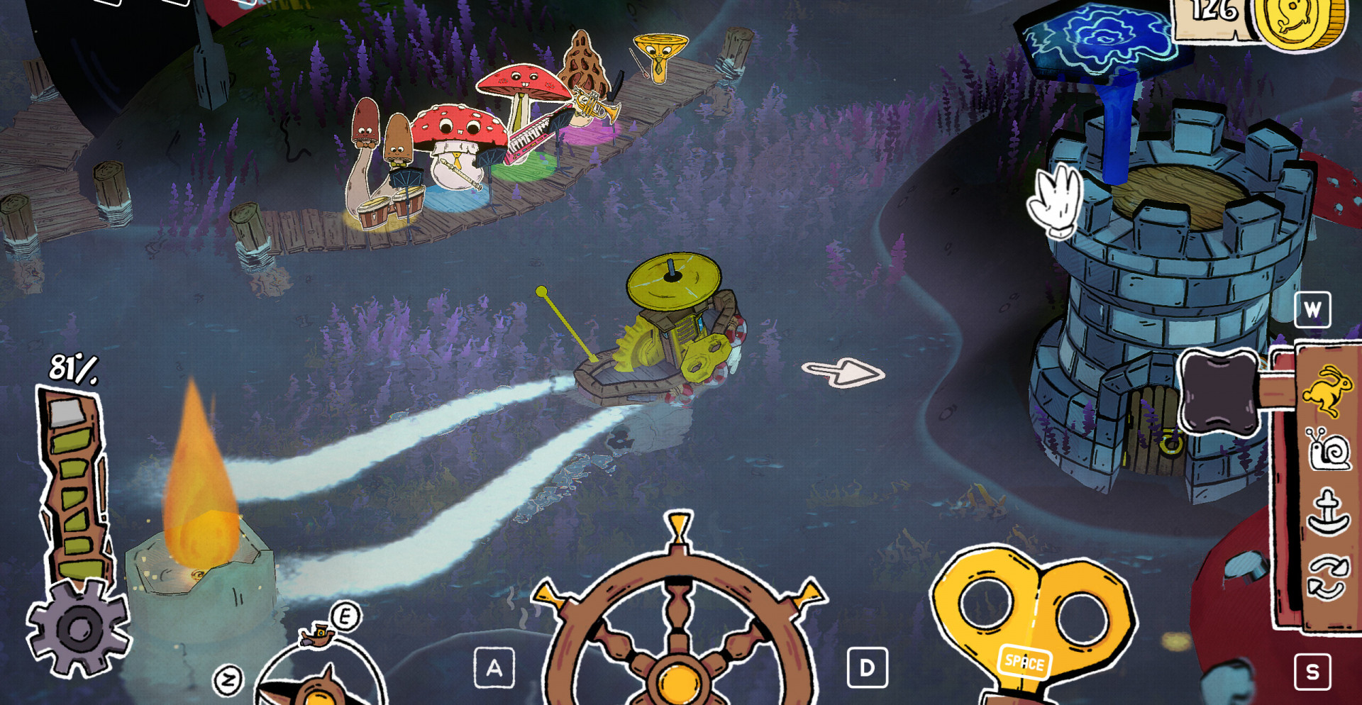 A Completely Fictional Story — это спокойное приключение, где действие разворачивается в странном городе, спрятанном внутри огромного кита. Всё начинается с небольшого заводного кораблика, который становится единственным способом передвижения по этому необычному миру. Пространство выглядит причудливо и дружелюбно, но при этом сохраняет ощущение тайны, подталкивая двигаться дальше и искать выход.