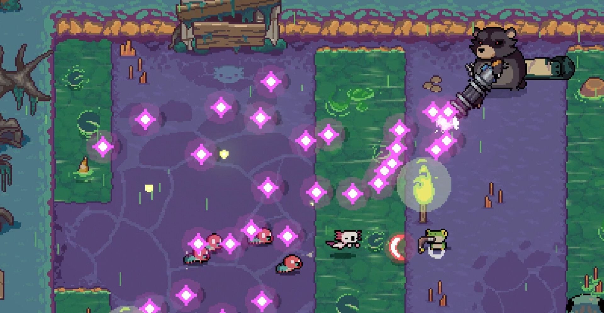 AK-xolotl – это динамичный шутер с элементами roguelite и простой 8-битной графикой, где вам предстоит взять на себя управление аксолотлем с автоматом Калашникова. Впадая в ярость он может разносить бесчисленные толпы врагов. При этом вашего персонажа невозможно убить, он просто восстает из пепла и начинает свой путь сначала.
