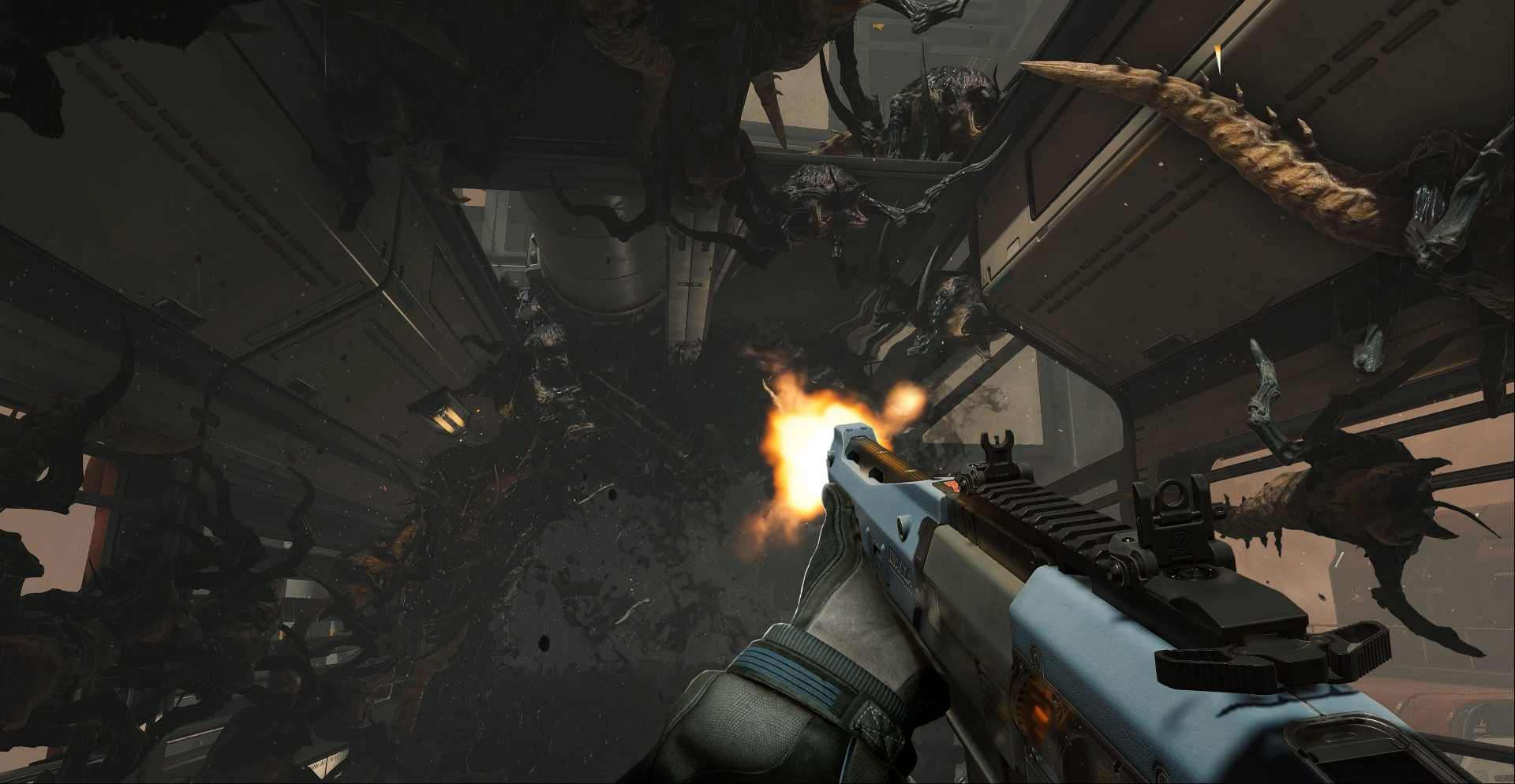 Игроку приходится адаптироваться к постоянному потоку угроз, комбинируя вооружение и выбирая приоритетные цели. Сражения проходят в высоком темпе, где важно контролировать дистанцию и не терять концентрацию. Постепенно открываются новые способы усиления, позволяющие выдерживать более сложные столкновения и продвигаться глубже в заражённые секции станции.