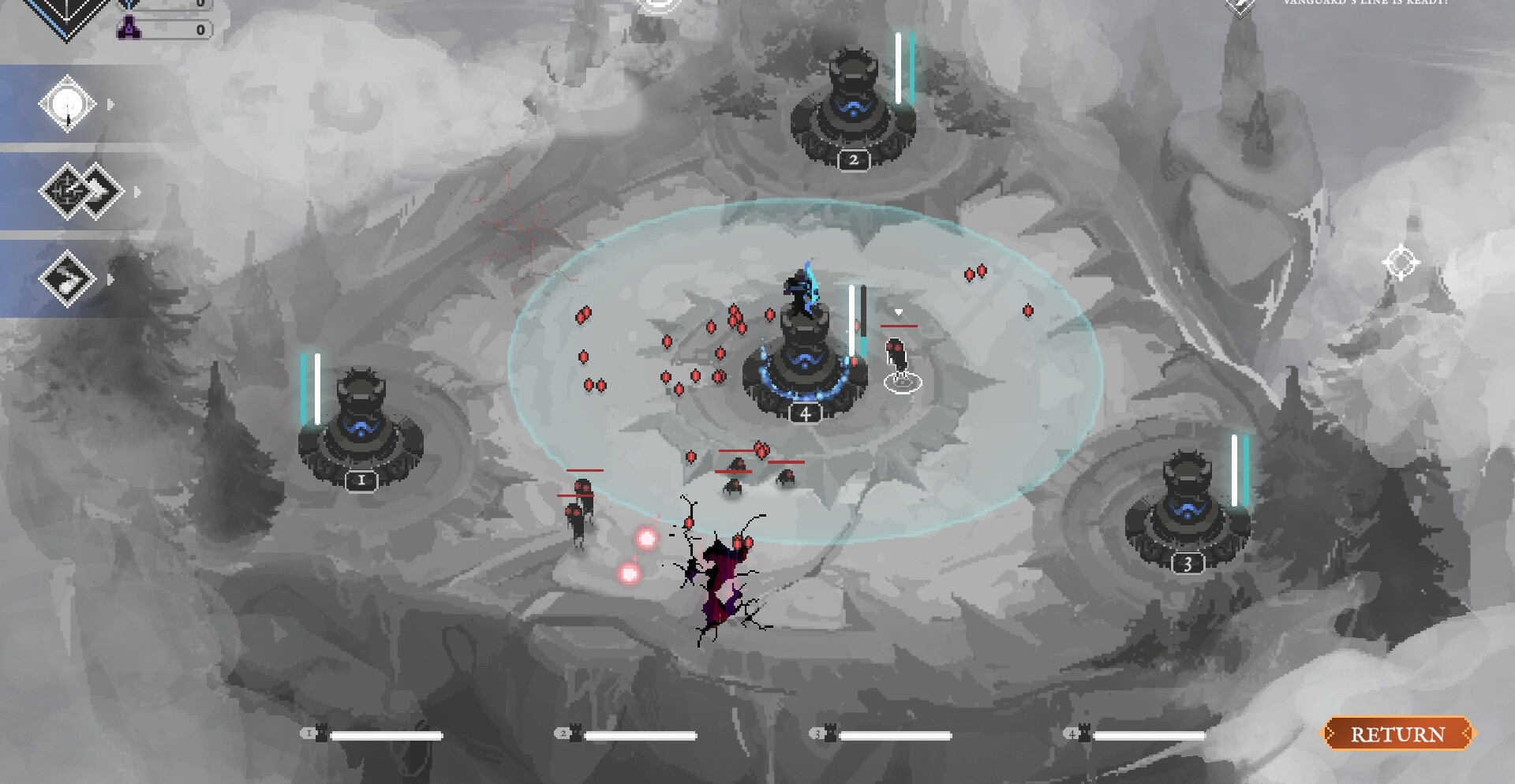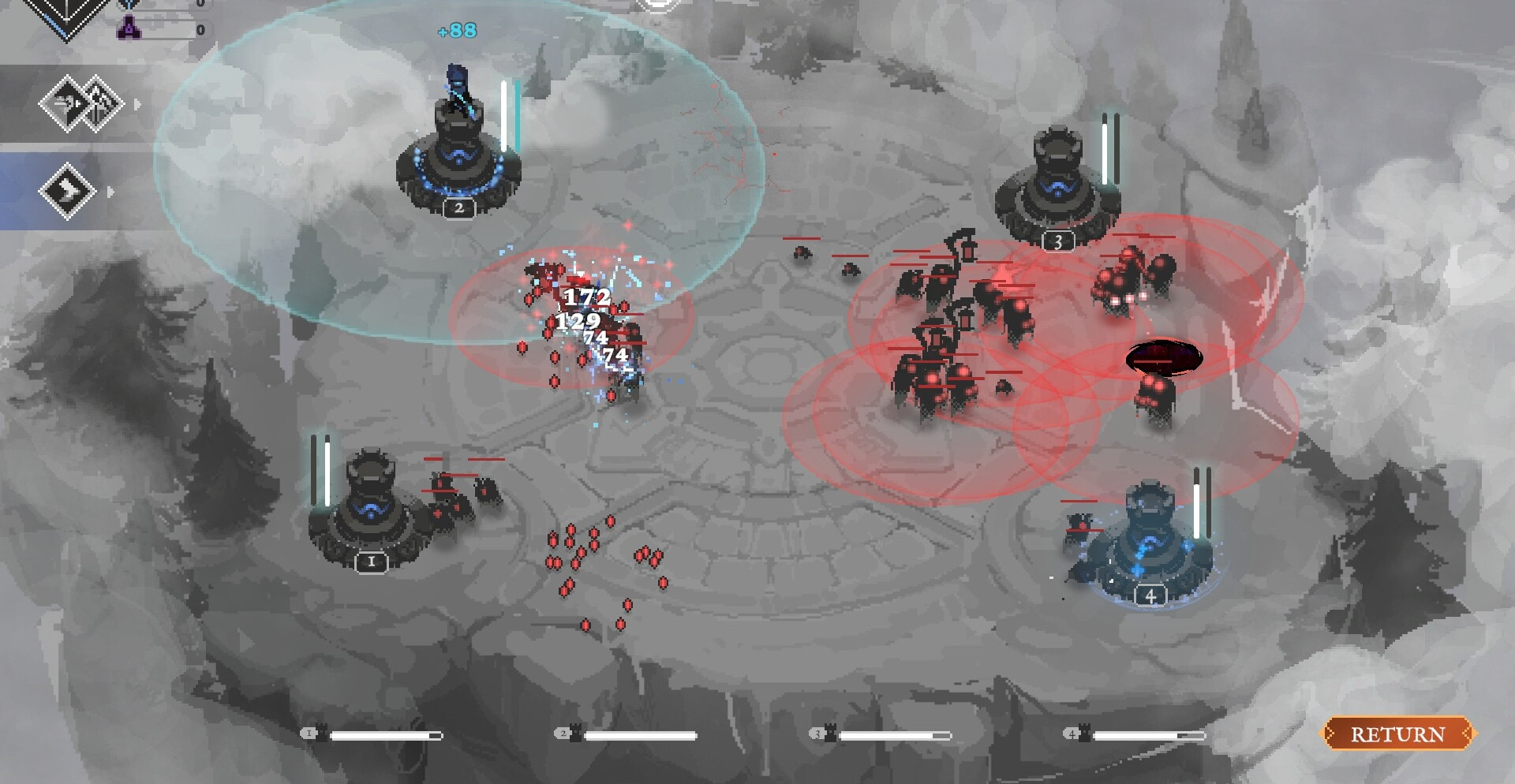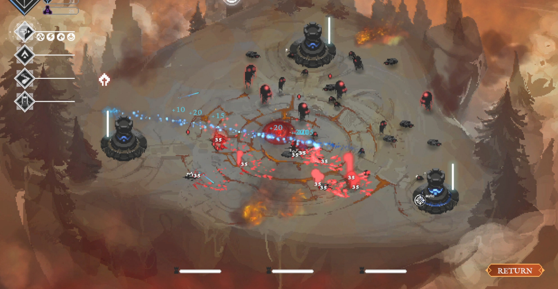 По мере продвижения появляются сильные противники и боссы, способные разрушить подготовленные линии защиты. Потеря хотя бы одной ключевой башни означает поражение, поэтому приходится внимательно следить за состоянием обороны и своевременно усиливать позиции. Успешные сражения открывают новые способности и расширяют возможности развития.