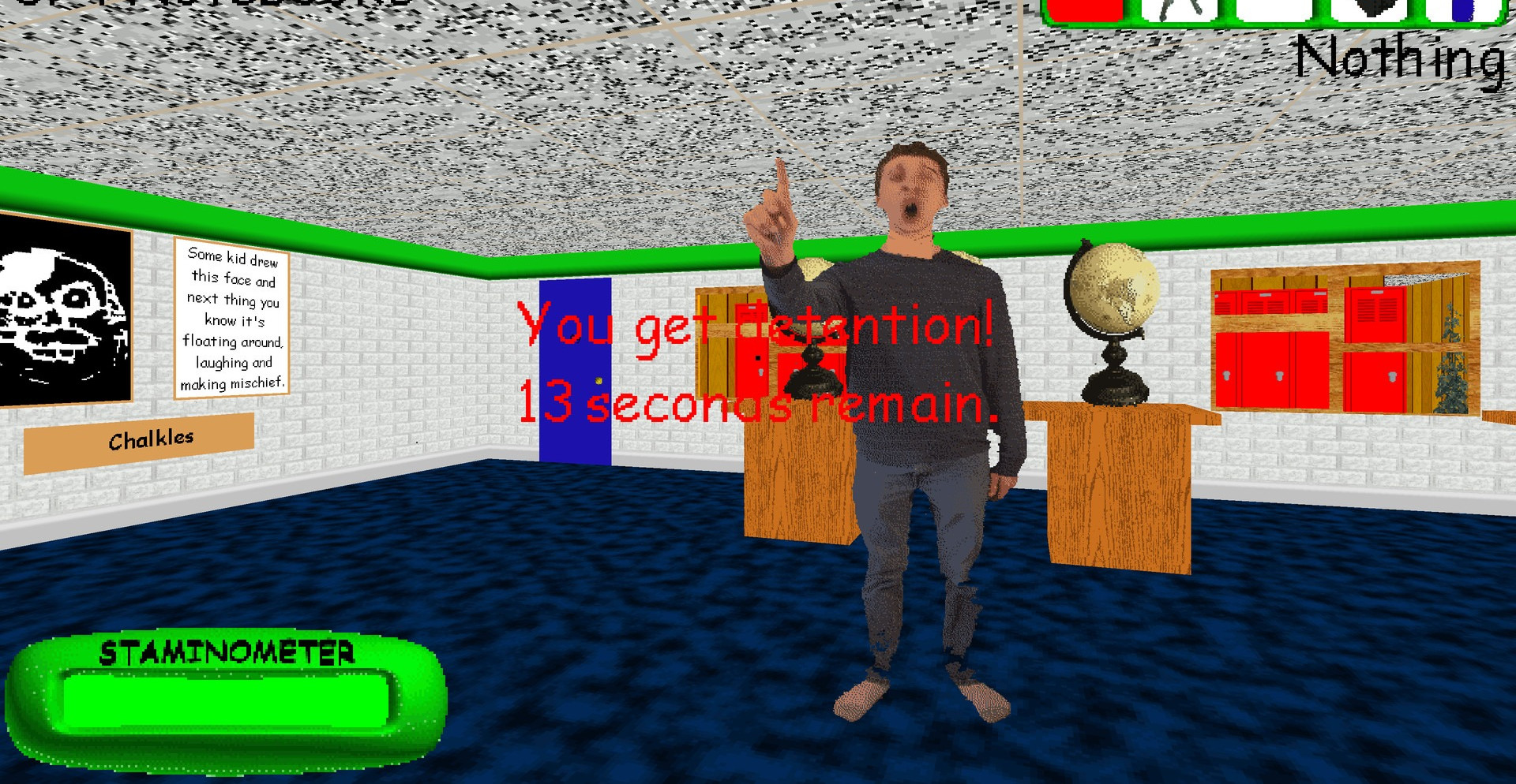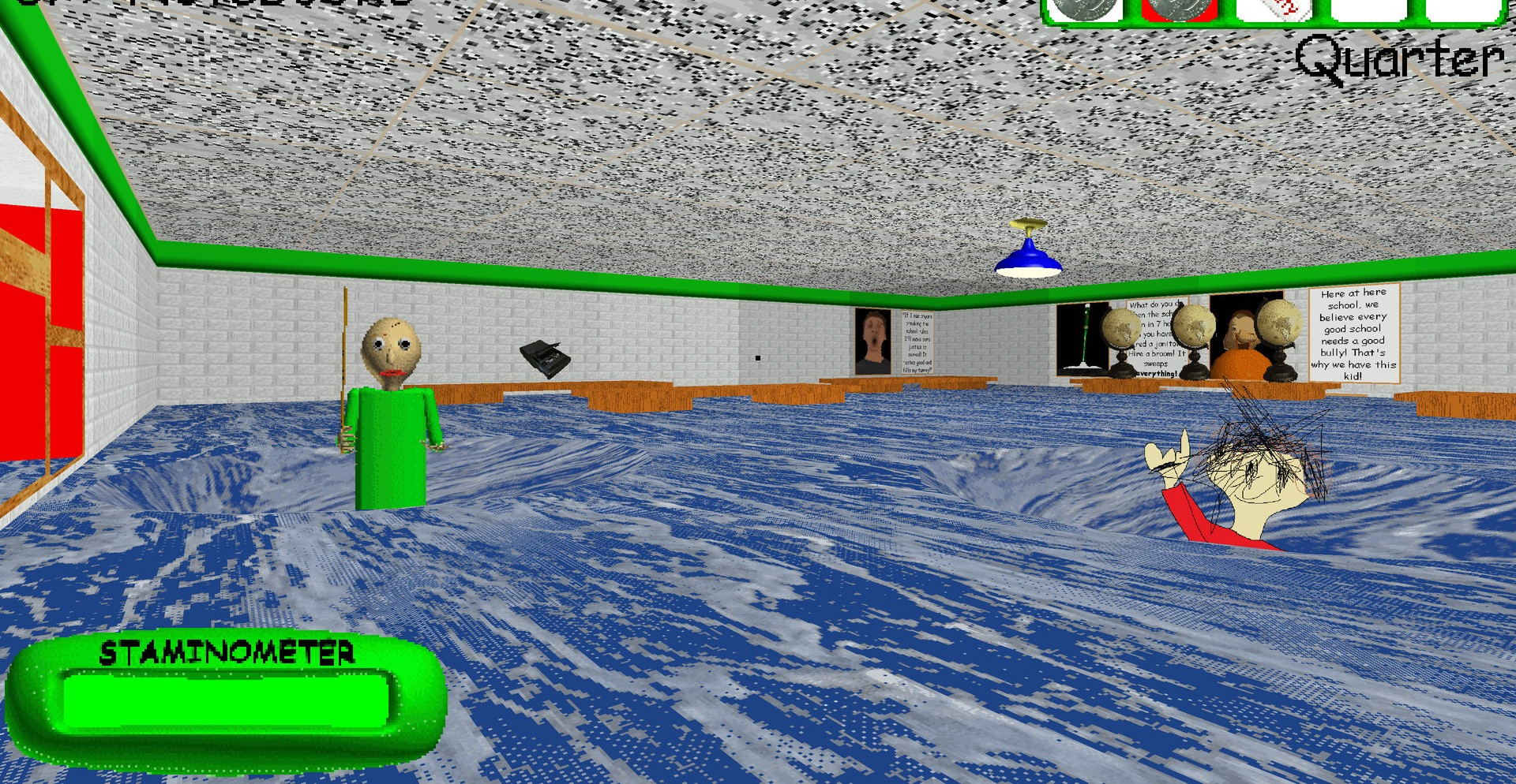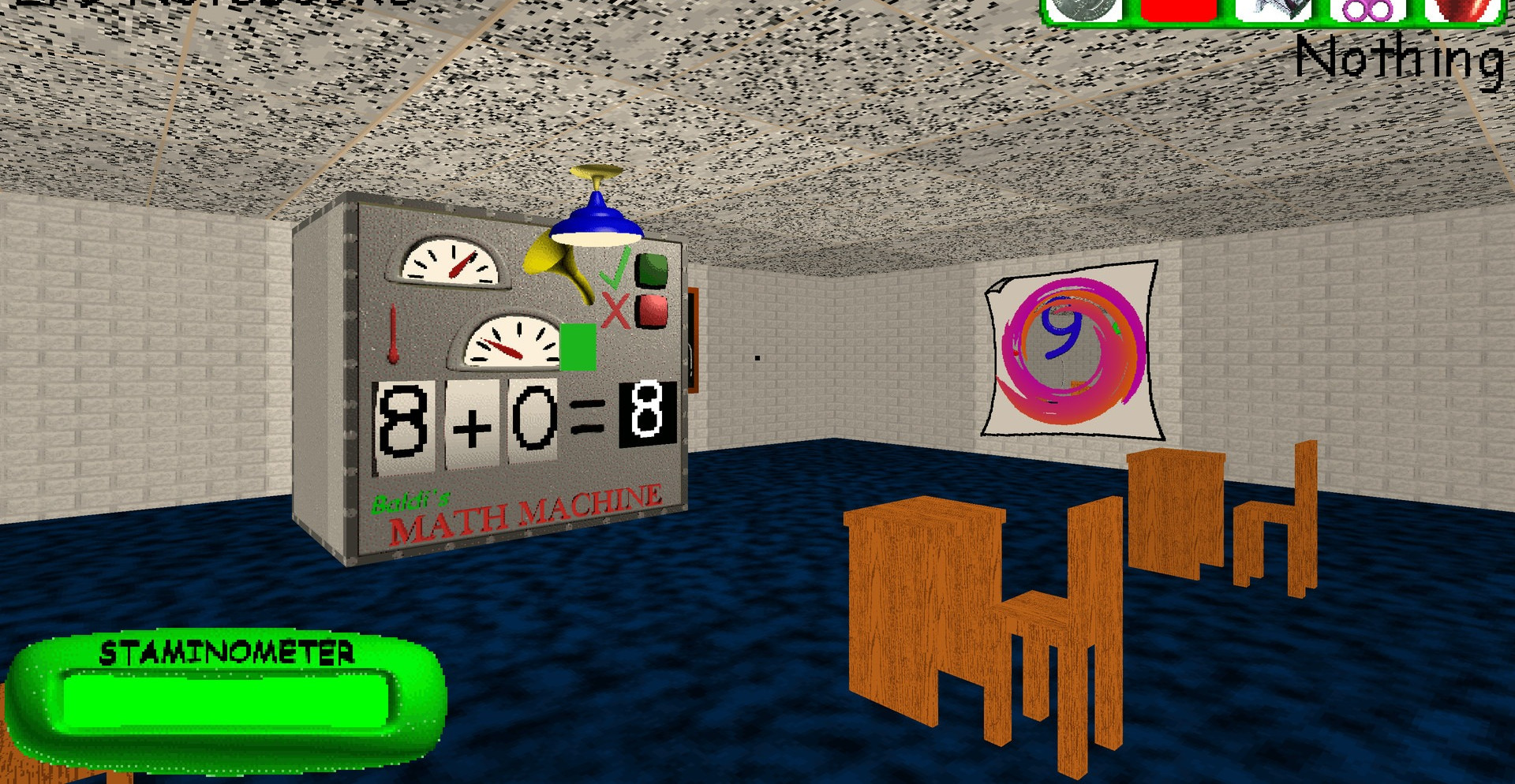 На территории школы разбросано множество различных предметов. Некоторые из них могут представлять для вас ценность. Собирайте их и, по возможности, применяйте. Но будьте осторожны, Балди слышит все.