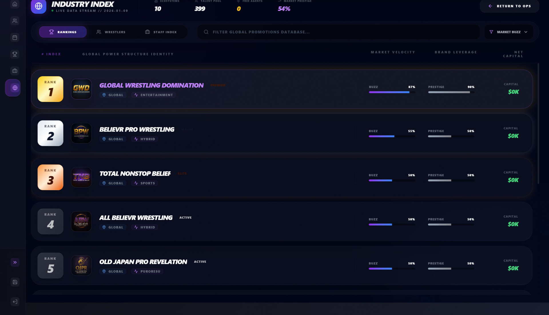 Believr Pro Wrestling — это управленческий симулятор рестлинг-промоушена, в котором каждое решение запускает цепочку последствий. Вы формируете шоу, продумываете матчи и промо, но никогда не знаете, к чему это приведёт. Импульс, эго и контекст могут усилить звезду или разрушить карьеру, а мир рестлинга не ждёт, пока вы всё рассчитаете.