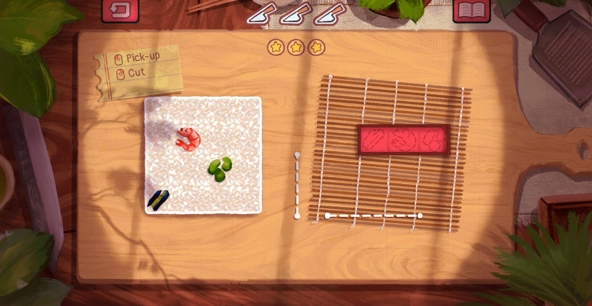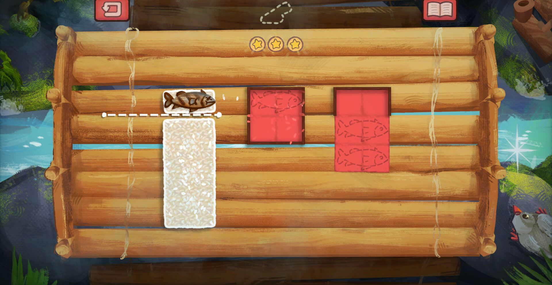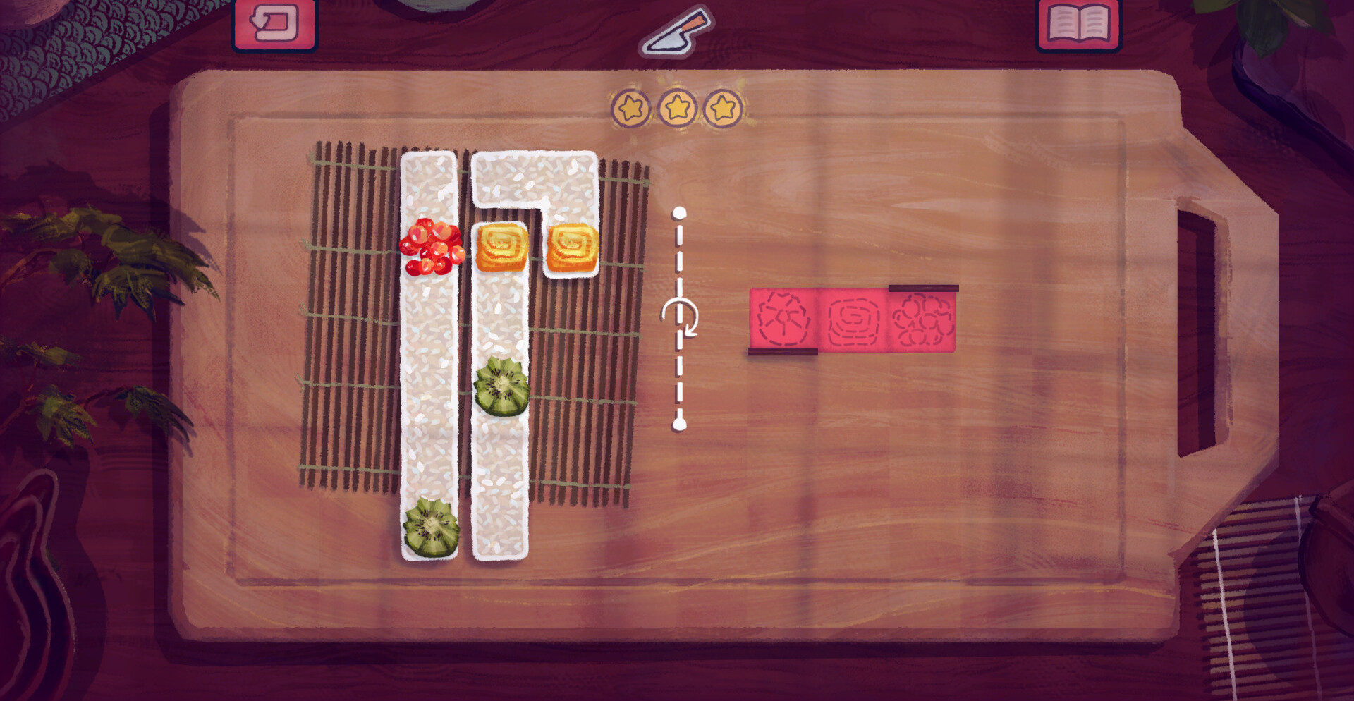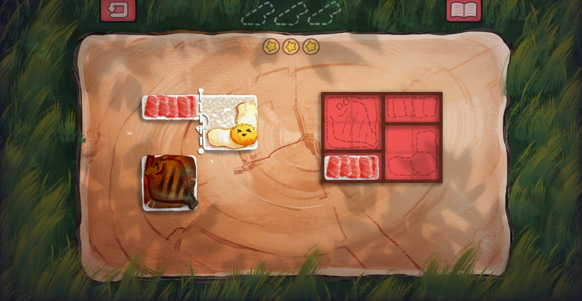 Более 180 уровней, созданных вручную, где каждый пазл строится вокруг собственной идеи и необычной механики размещения. Игроку приходится анализировать форму ингредиентов, заранее просчитывать разрезы и учитывать ограниченное пространство коробки. Чем меньше действий совершено, тем выше итоговая оценка и количество звёзд.
