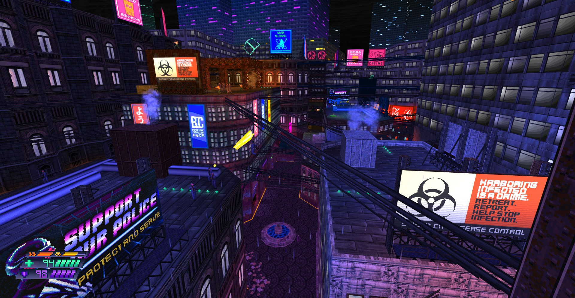 Неповторимая атмосфера, пропитанная ярким музыкальным оформлением по типу паровой волны.