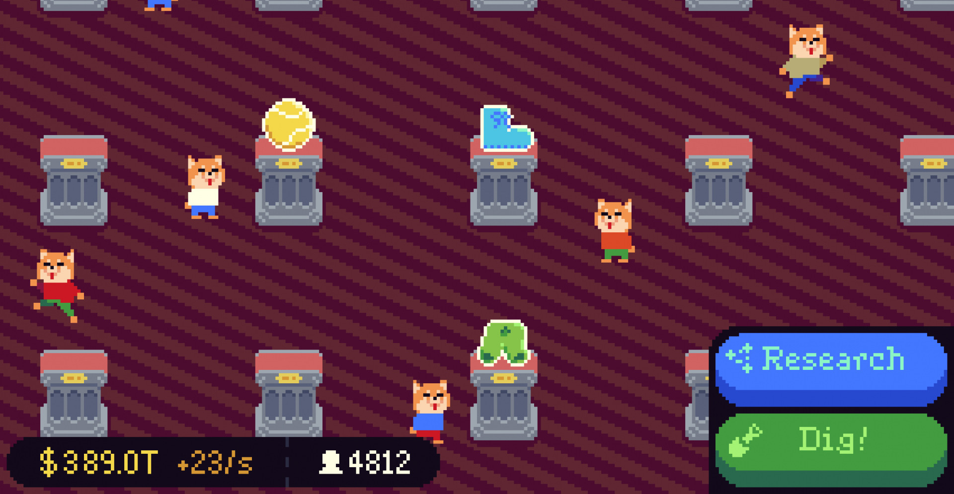Big Dig — это нарративный инкрементальный симулятор, где игрок занимается раскопками и развитием музея, постепенно углубляясь в новые слои мира в поисках реликвий, которые приносят прибыль и открывают доступ к улучшениям, при этом вся деятельность связана с задачей поддержать амбициозный проект мэра, требующий постоянного роста и расширения возможностей.