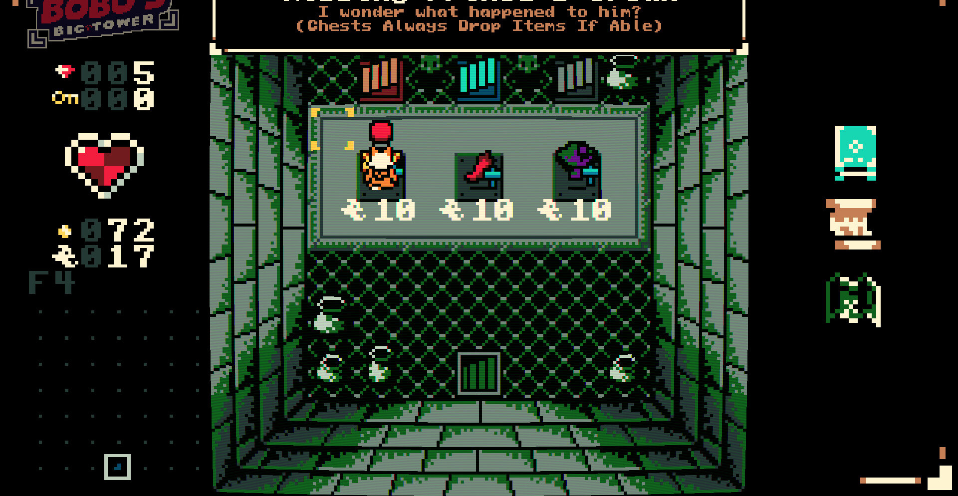 По мере прохождения открываются новые герои со своими историями и стартовыми наборами предметов. Различное оружие меняет стиль прохождения: одни атаки наносят физический урон, другие используют магию или дальние выстрелы. Собирая артефакты и улучшения, игрок постепенно создаёт собственную стратегию восхождения по опасной башне.