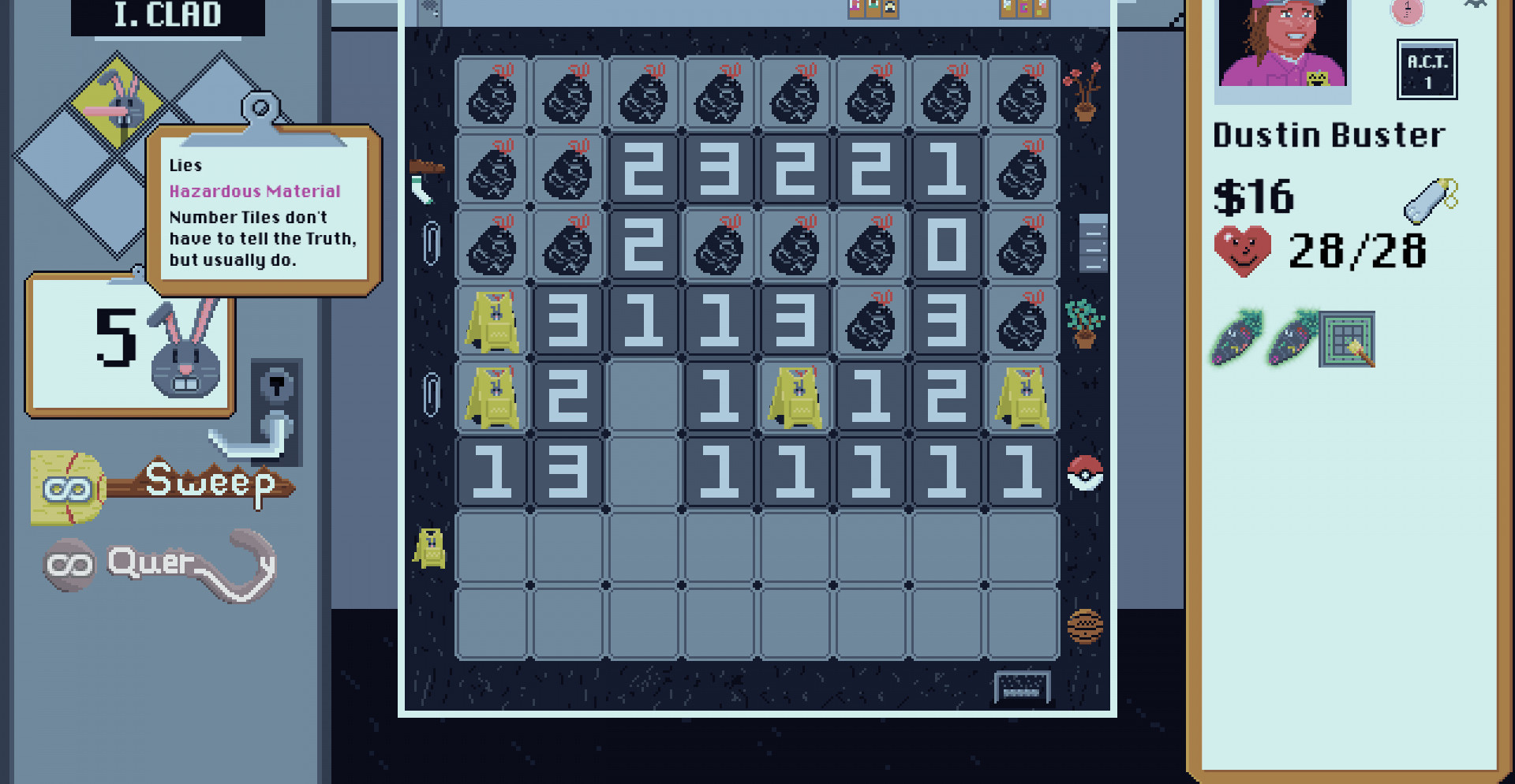 BroomSweeper — это необычный гибрид классического «Сапёра» и roguelike, замаскированный под ночную смену уборщика в штаб-квартире мегакорпорации. Под видом рутинной работы игрок постепенно сталкивается с абсурдным и тревожным кошмаром, где каждая плитка может скрывать угрозу, а простая уборка превращается в борьбу за выживание и сохранение работы.