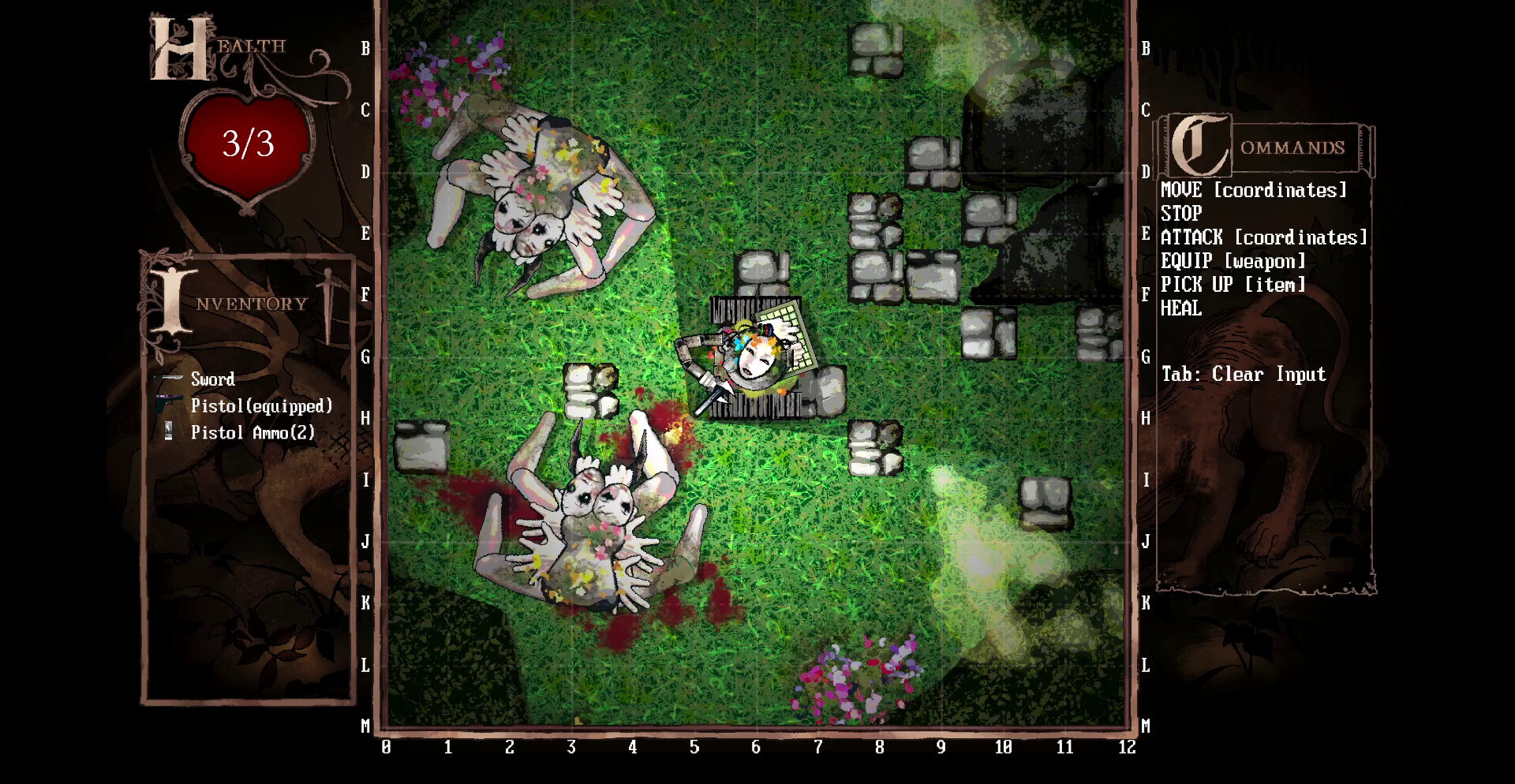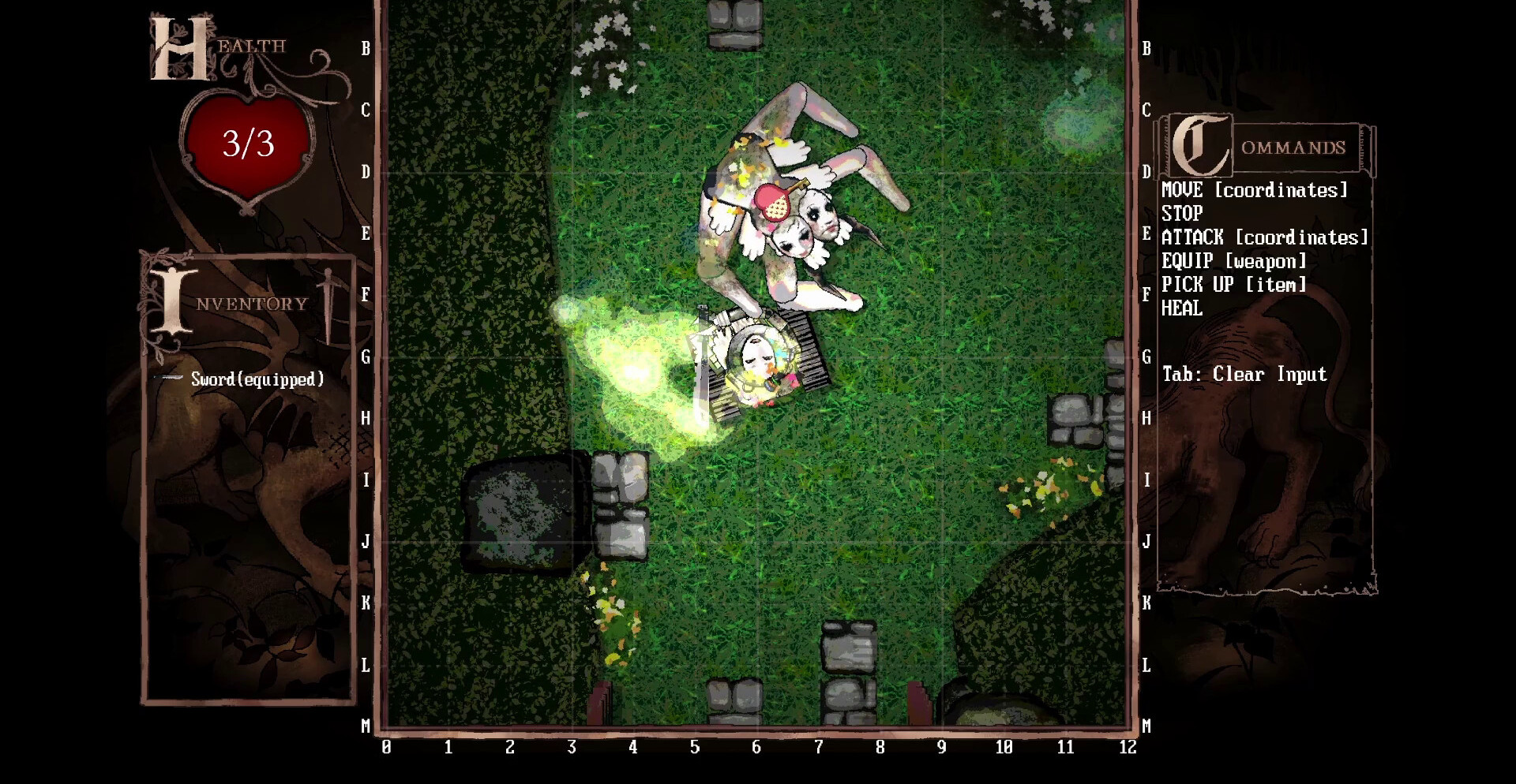 Передвижение и атака напрямую связаны со скоростью набора текста. Ошибка замедляет, сбившийся ритм оставляет уязвимым, а промедление даёт врагам шанс приблизиться. Монстры-киборги искажены технологией и древней магией, их формы напоминают остатки рыцарей, превращённых в механические оболочки. Сражения требуют концентрации и устойчивого темпа печати.