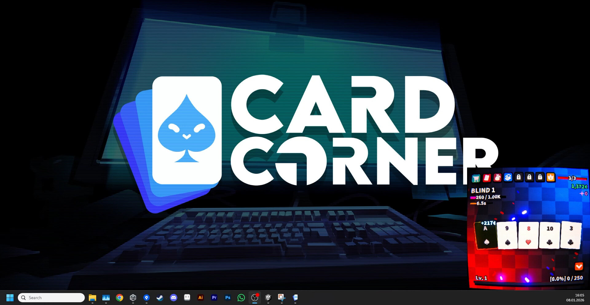 Card Corner — это карточная idle-игра о сборе покерных комбинаций, работающая в небольшом окне в углу экрана. Карты раздаются автоматически, формируя руки и принося фишки, которые вкладываются в постройки с множителями дохода. Игрок постепенно оптимизирует экономику, усиливает колоду и ускоряет темп накопления без отрыва от других дел.