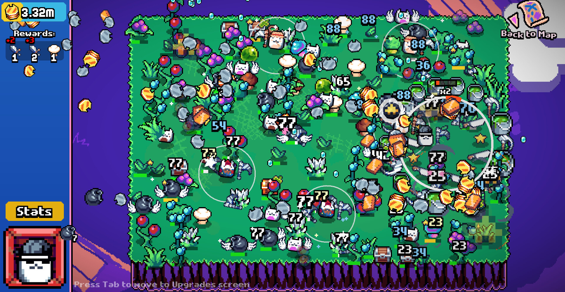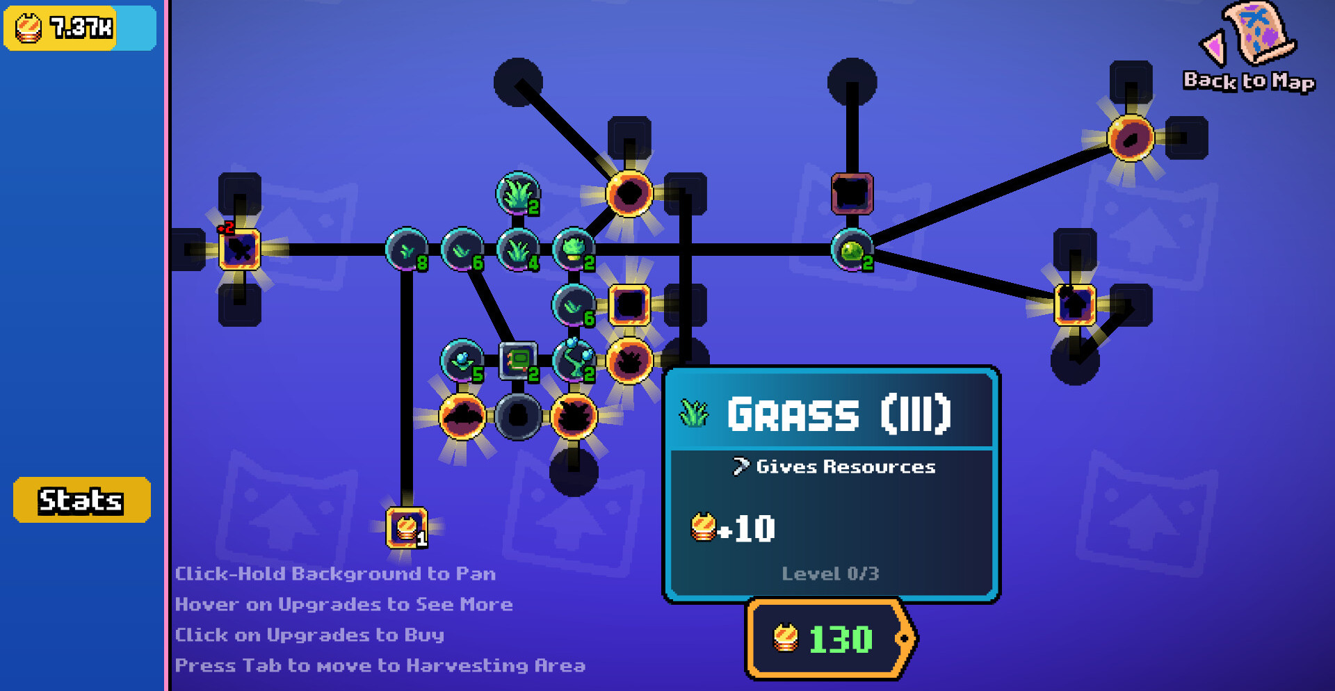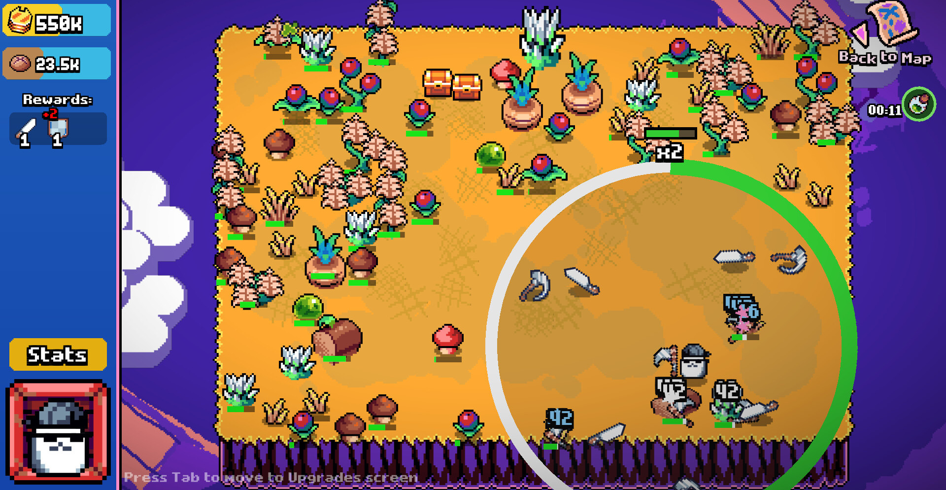 Собранные ресурсы заполняют шкалу опыта и открывают выбор улучшений. Одни усиливают производство, другие открывают новые растения или дают инструменты для автоматизации. Со временем комбинации апгрейдов начинают усиливать друг друга, создавая более мощные и быстрые способы развития фермы.