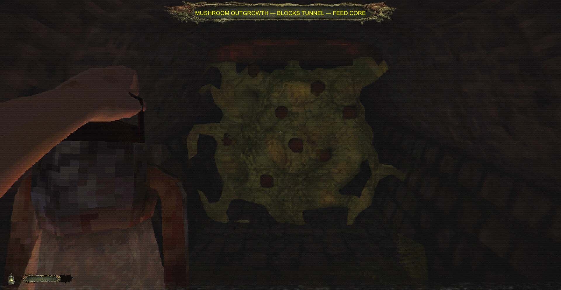 Прогресс строится вокруг странного ритуала. Вместо ключей используются органические подношения: грибы, существа и другие биологические объекты, найденные в туннелях. После кормления Ядра организм временно отступает, щупальца раздвигаются и открывают новые участки, позволяя проникнуть дальше в лабиринт.