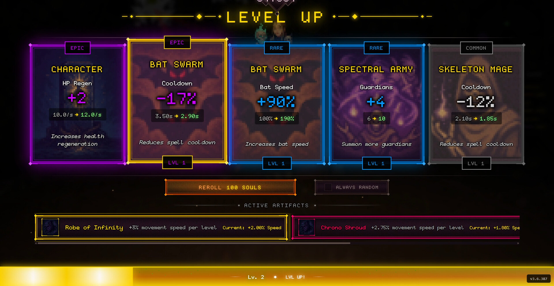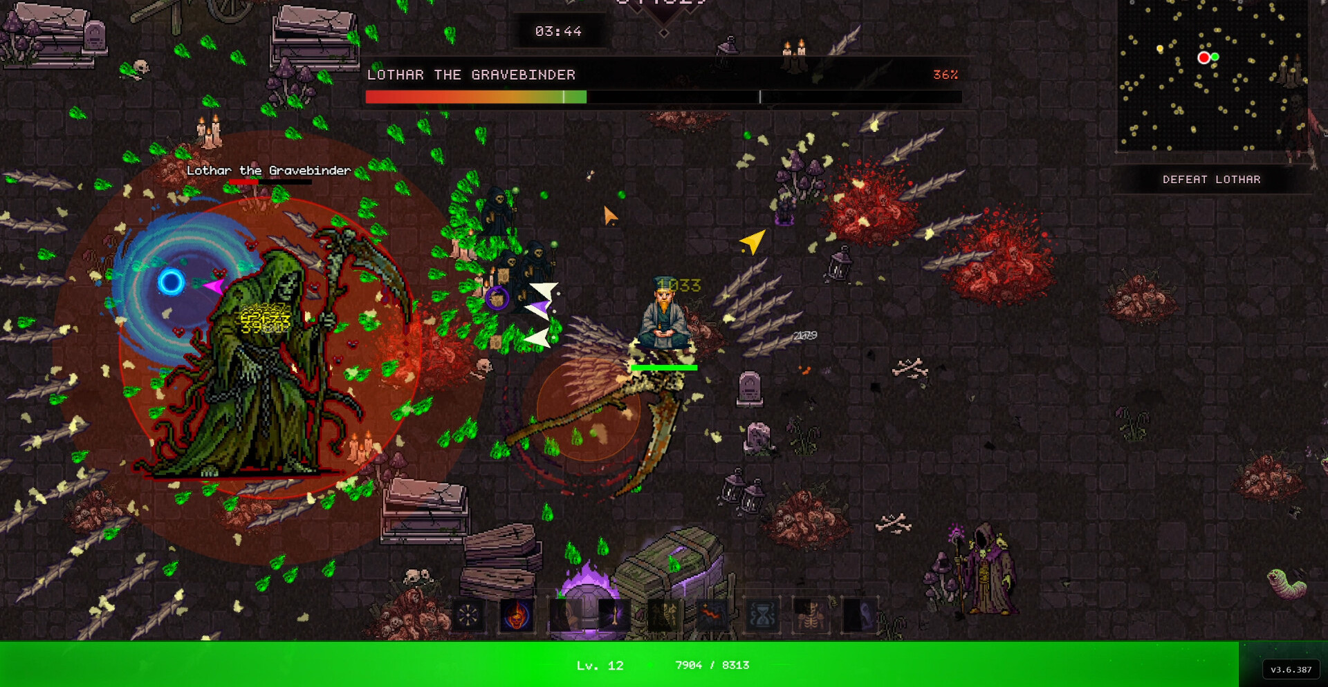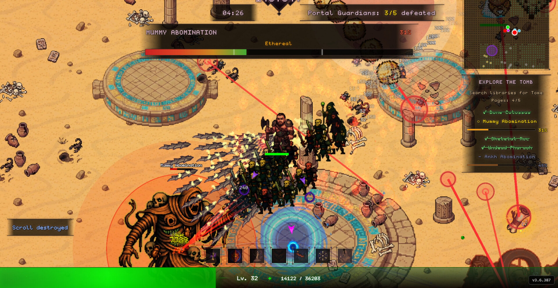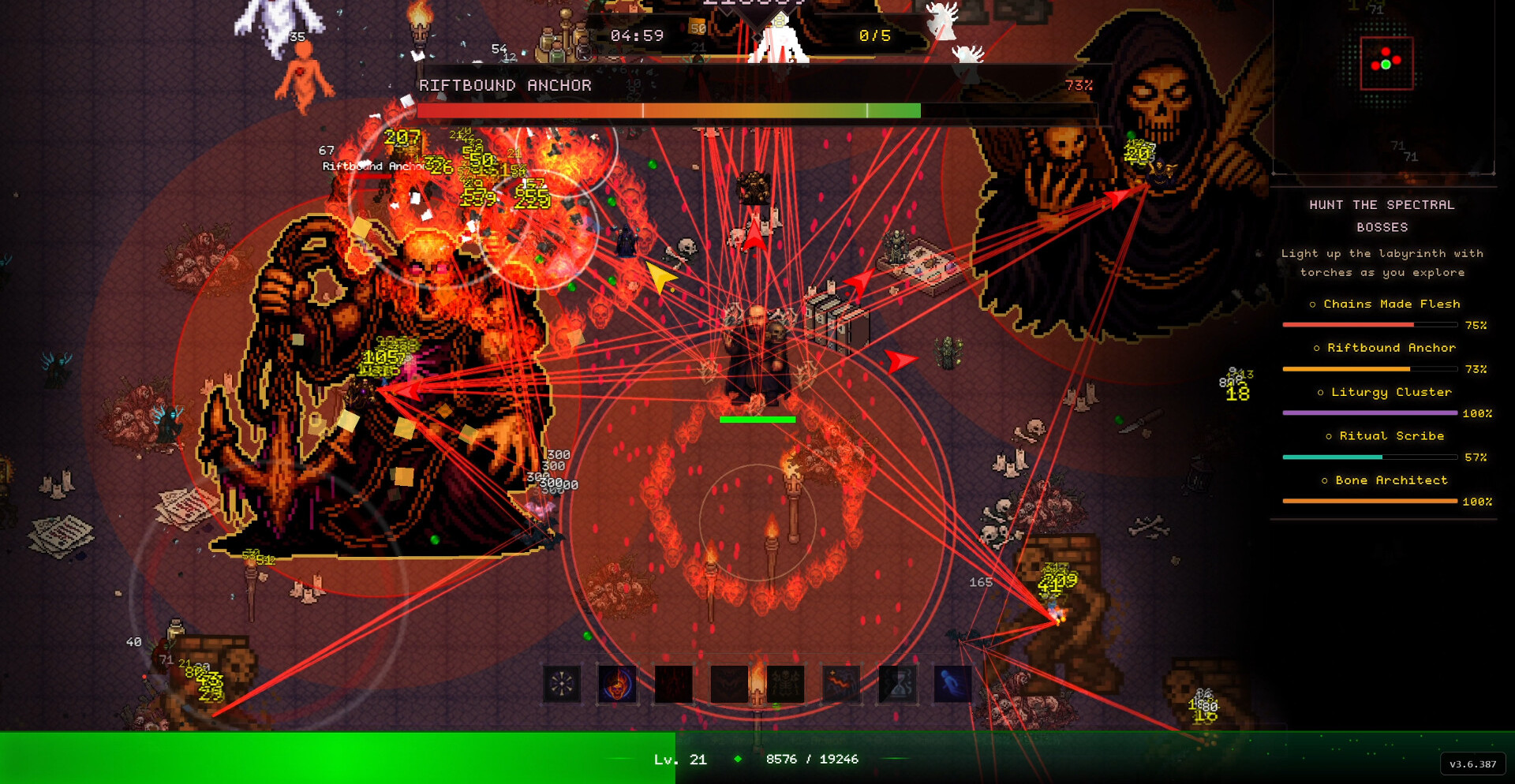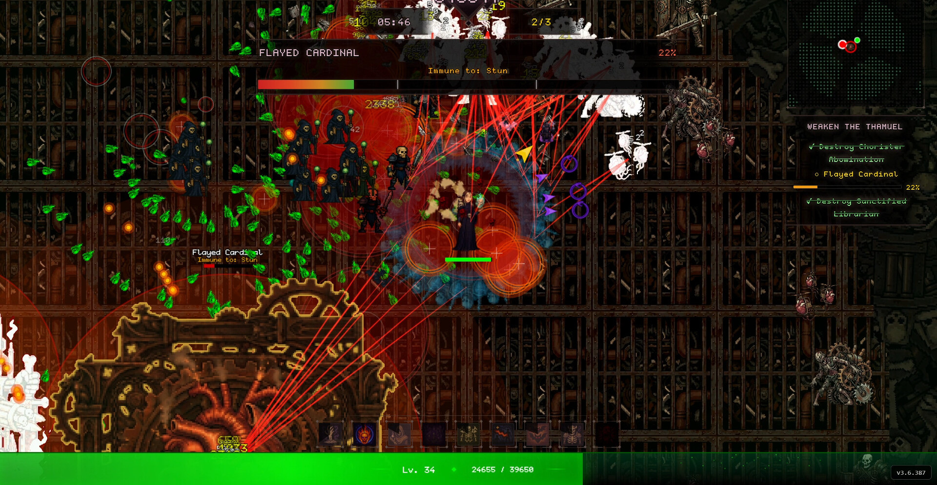 После начала боя всё сводится к реализации выбранной сборки. Приспешники, взрывы и жертвенные механики заполняют экран эффектами, превращая столкновения в непрерывный поток разрушения. Чем точнее выстроена комбинация, тем быстрее растёт мощь, позволяя удерживать контроль даже в самых плотных волнах противников.