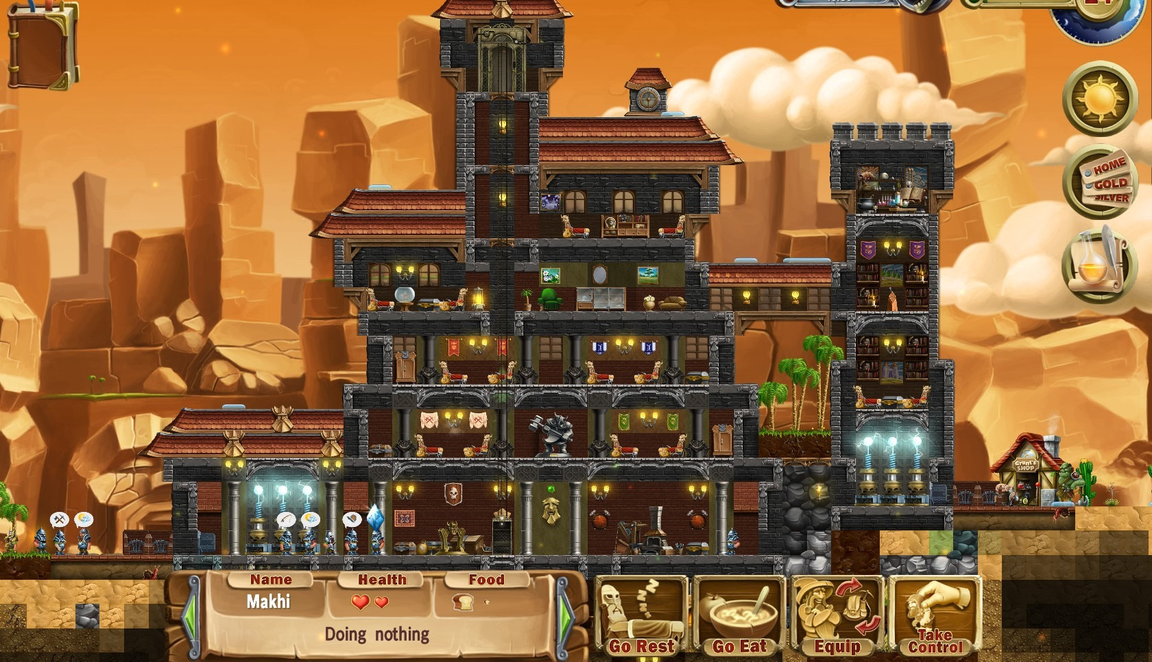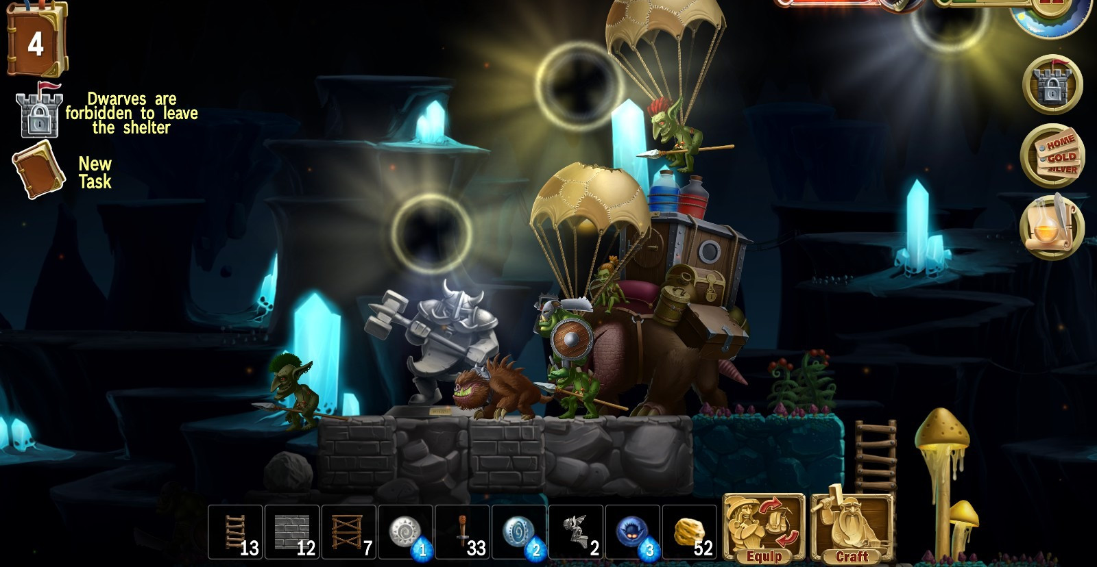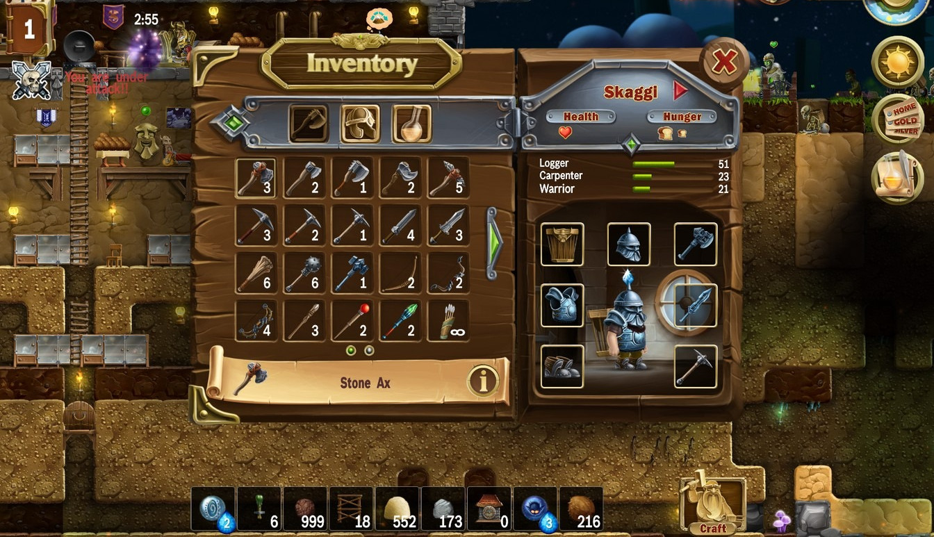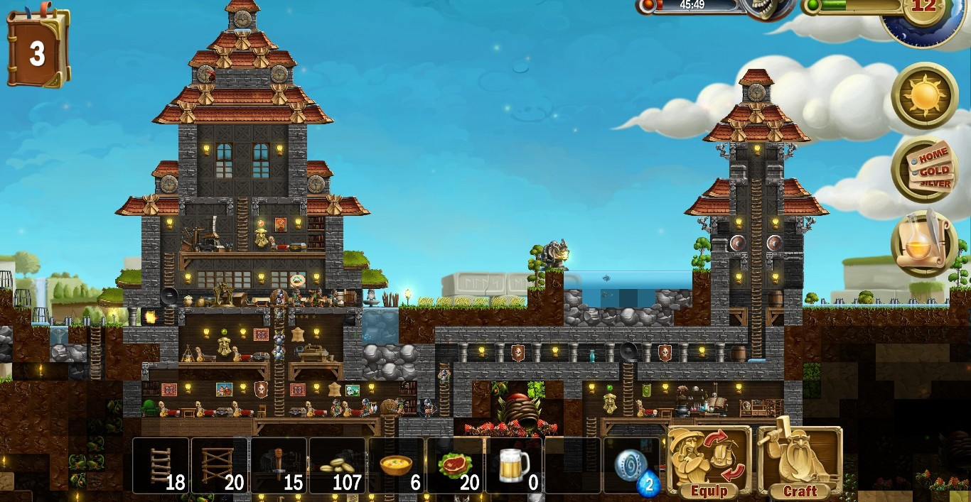 В подчинении у пользователя будет практически бесплатная рабочая сила – гномы, правда сначала в единственном экземпляре, но постепенно их количество увеличится. В задачу пользователя входит командование своими подопечными, чтобы всегда были заняты – один копает, второй отправляется на войну, третий строительством занимается. Но так же не стоит забывать заботиться о гномах – обеспечить их едой, одеждой, порцию магии подкинуть и т.д.