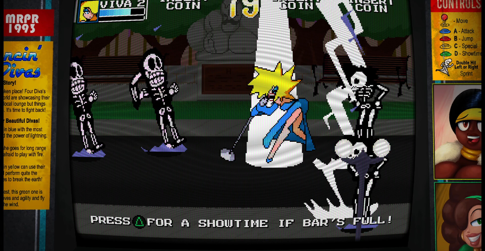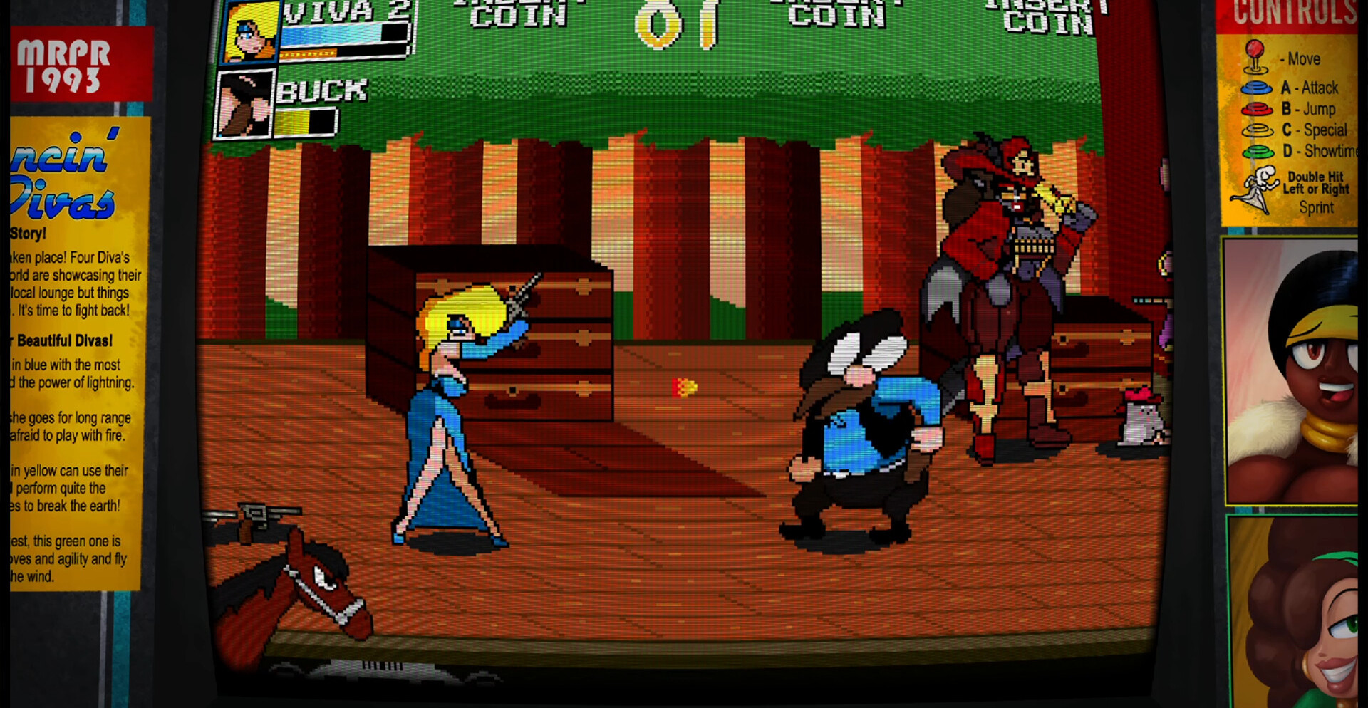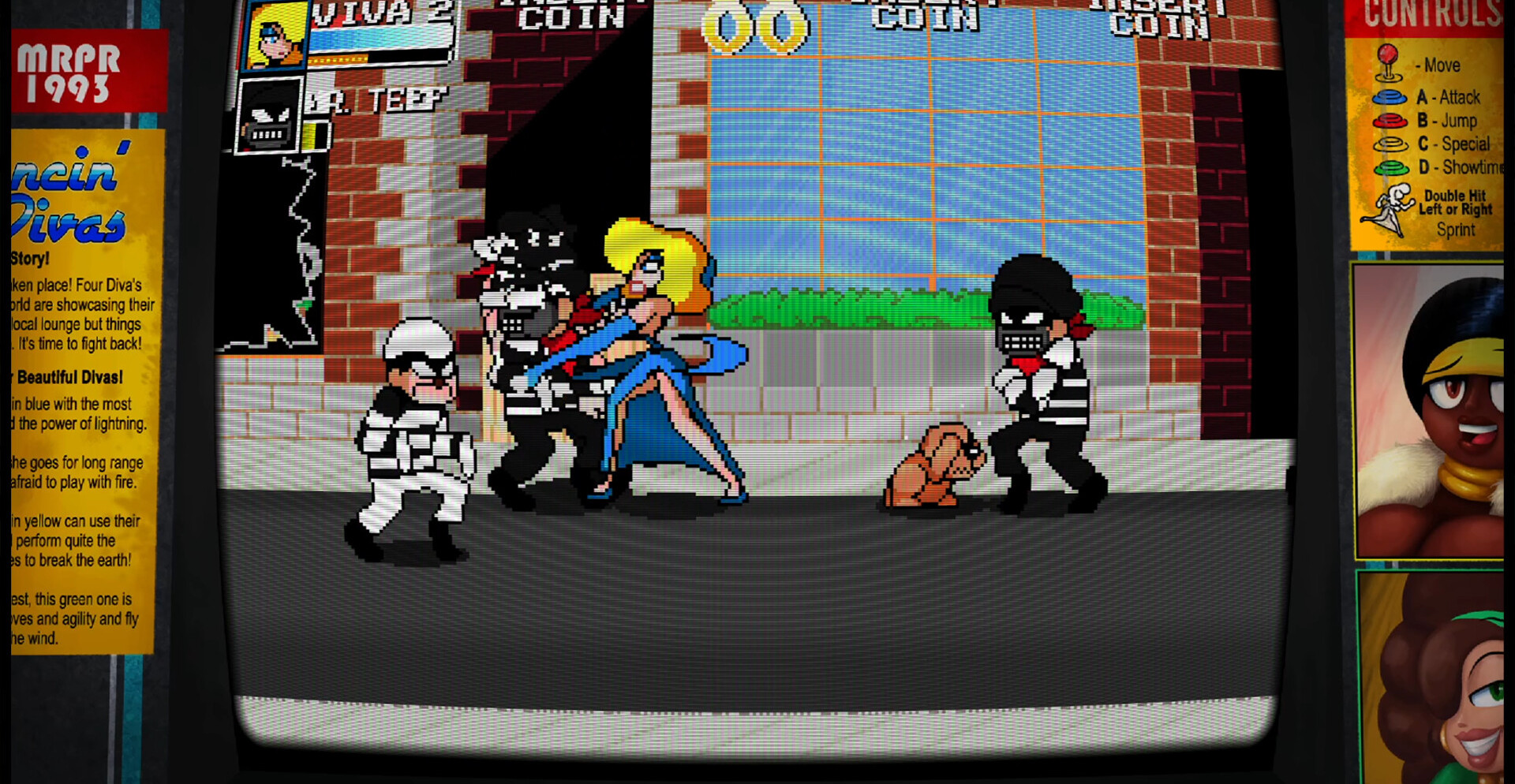 Dancin Divas — это яркий аркадный beat ’em up, где каждая схватка превращается в шоу. Четыре неотразимые дивы со всего мира выходят на сцену, чтобы вернуть украденные сокровища и наказать злодеев. Сражайтесь в ритме музыки, собирайте комбо и устраивайте настоящее представление, где стиль и сила сливаются в единый танец хаоса и адреналина.