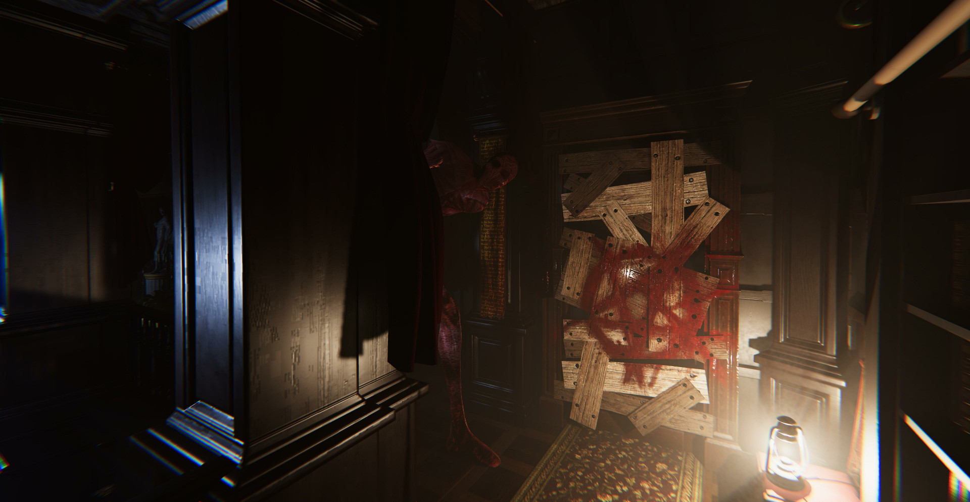 Атмосферный звук и свет, усиливающие чувство тревоги и изоляции.