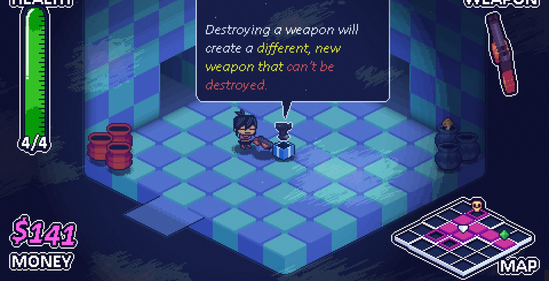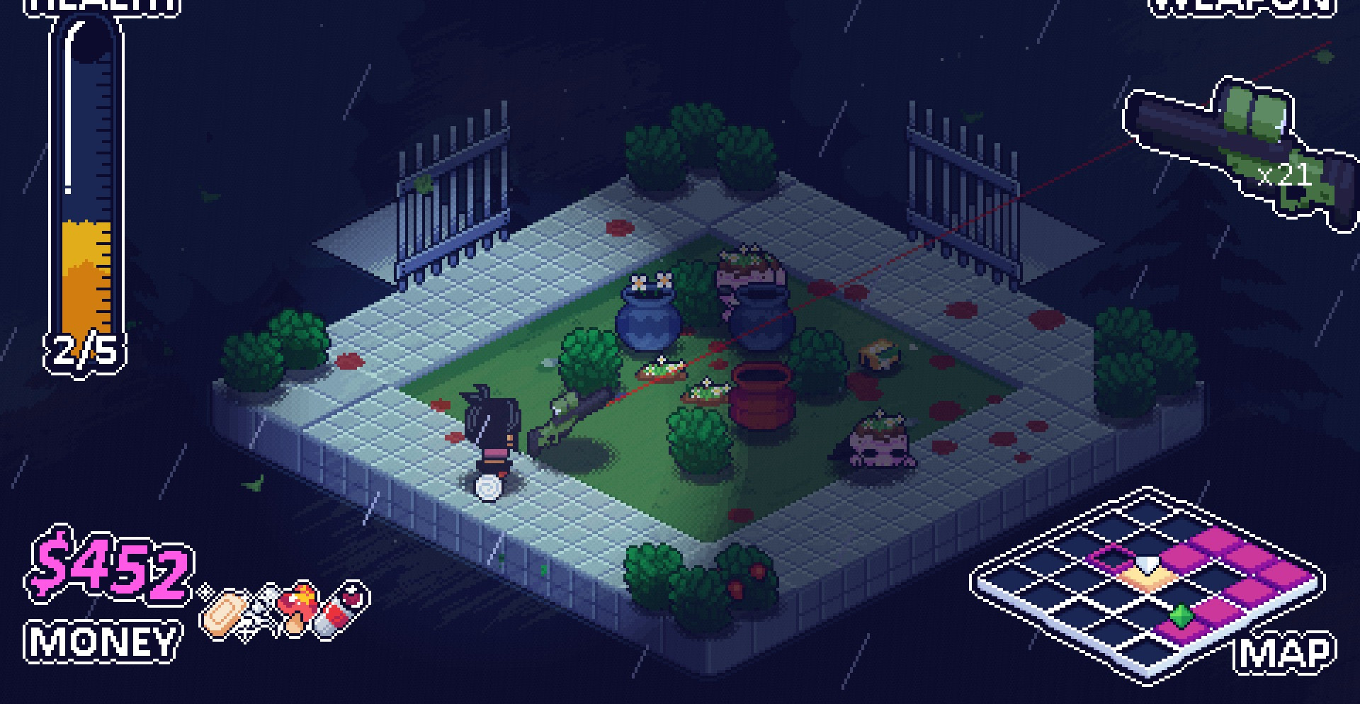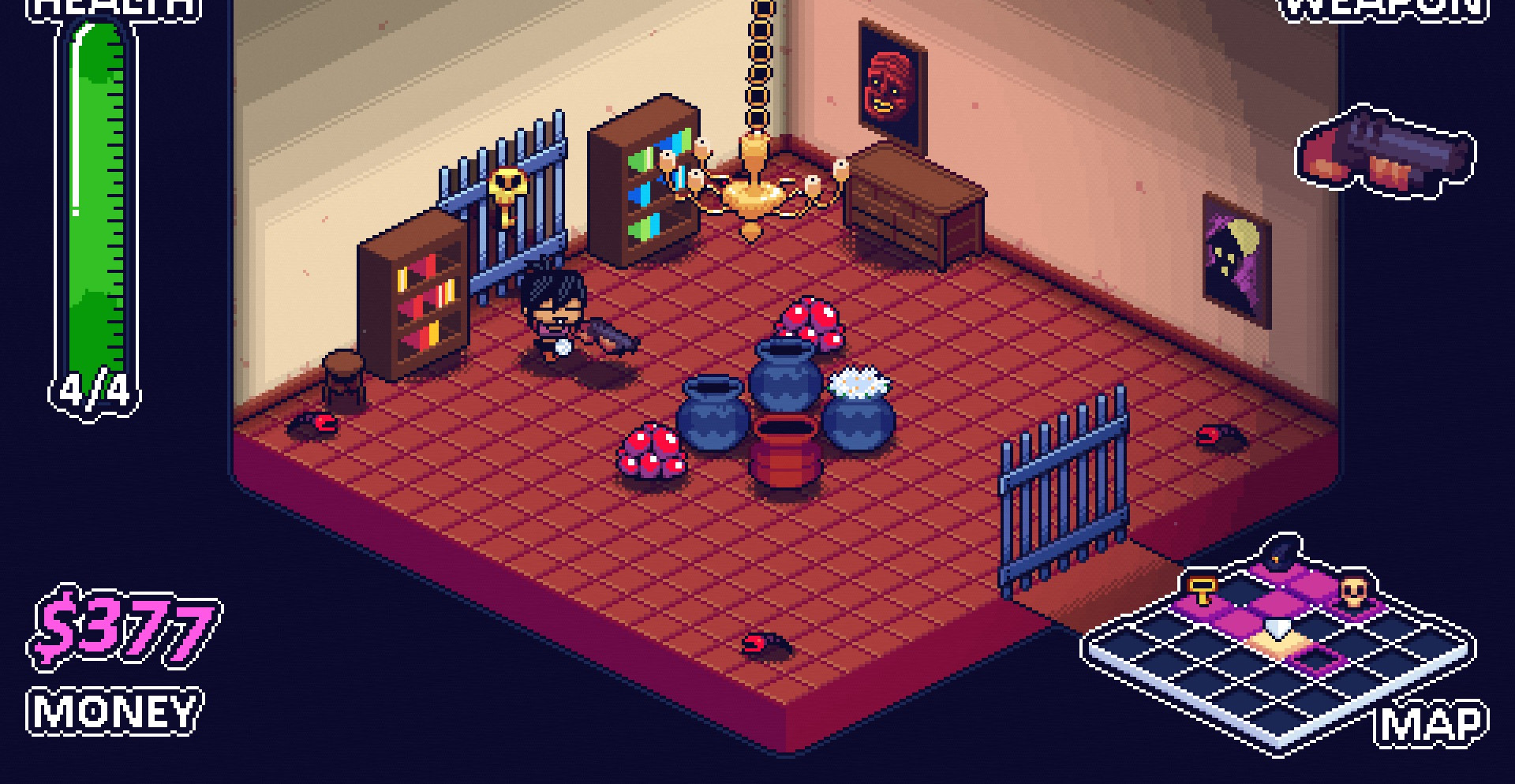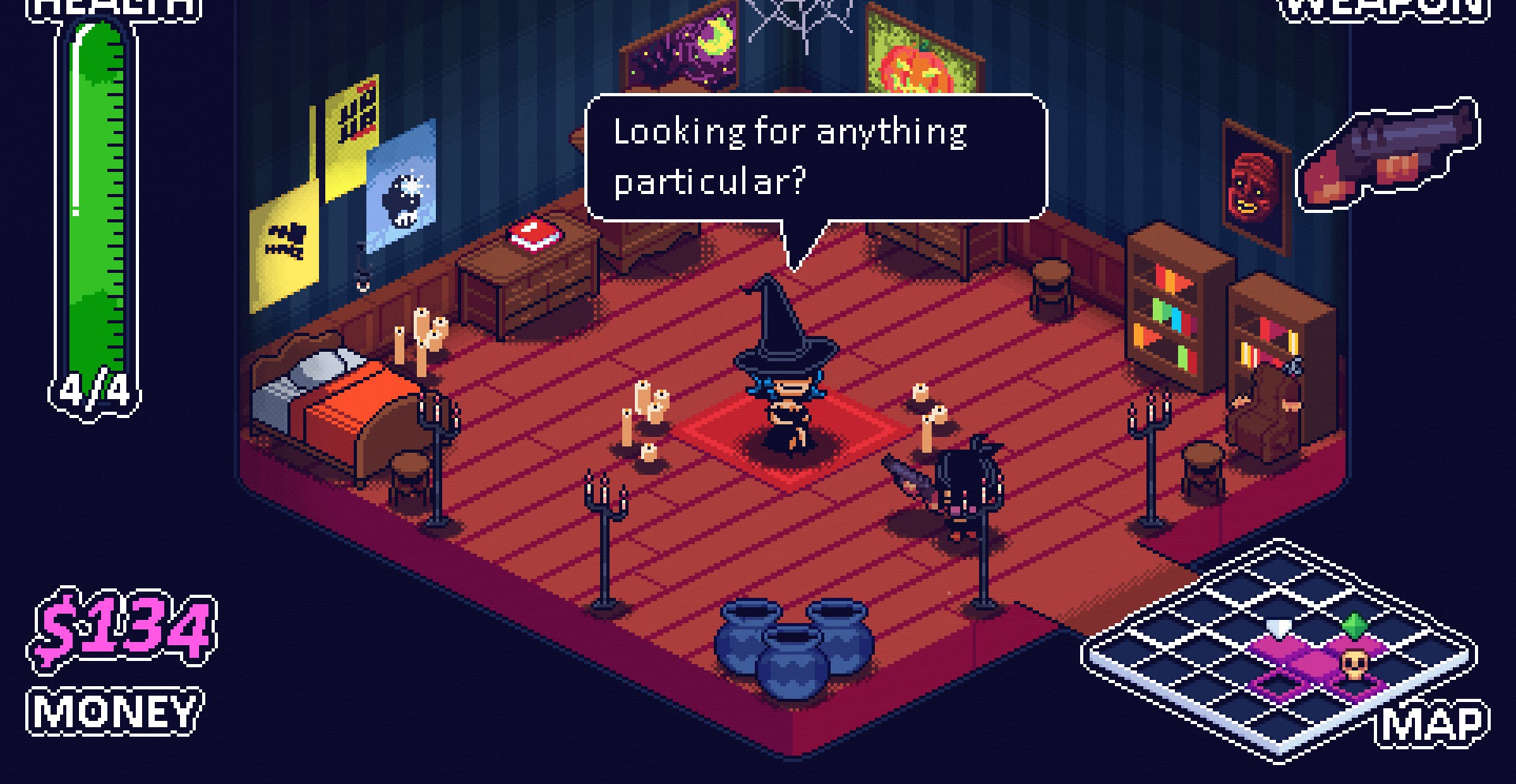 Выполненная в жанре рогалика игра, вращается вокруг Хэллоуина и других ужасных мотивов, поэтому вы точно испытаете неподдельный страх! Для начала выберите кем, хотите играть, затем постепенно продвигайтесь по мрачному особняку и конечно же постарайтесь собрать как можно больше различных предметов.