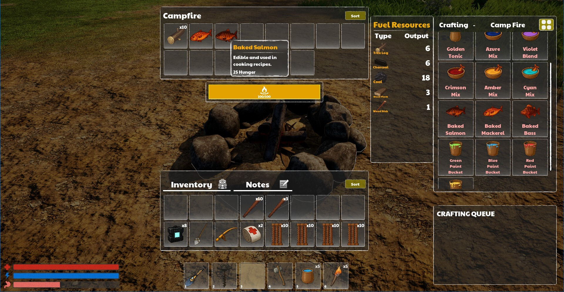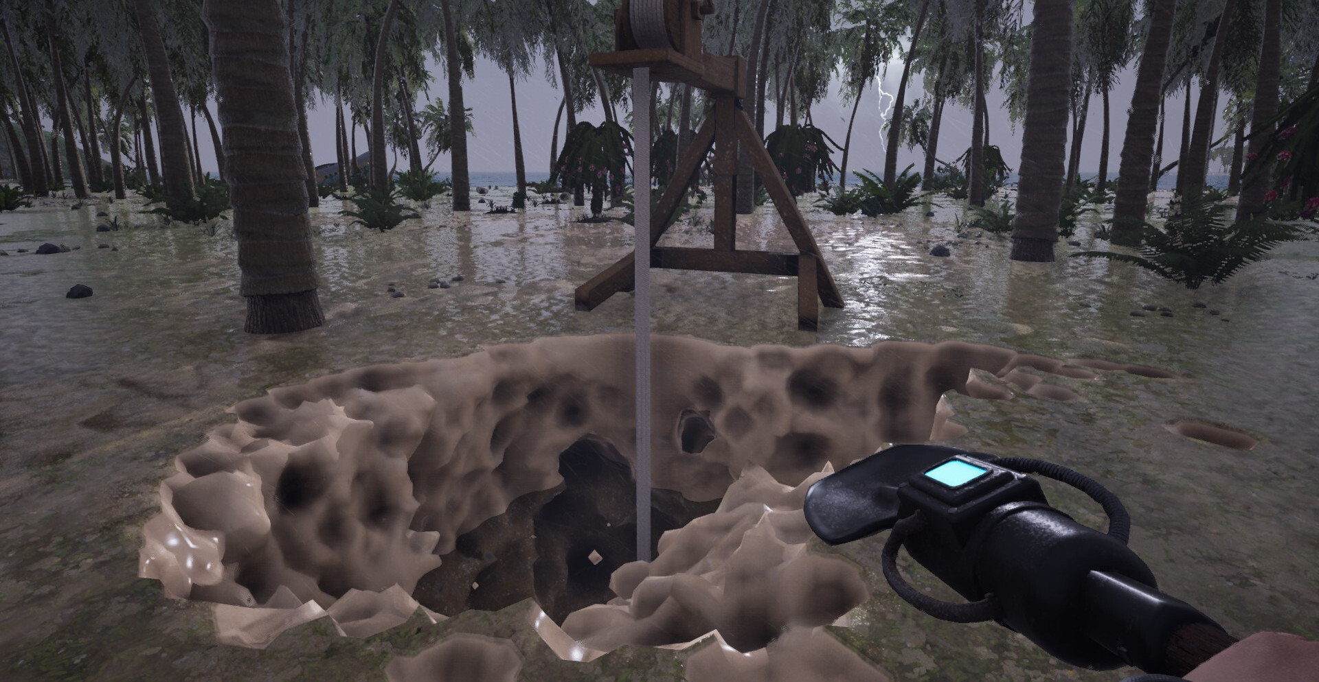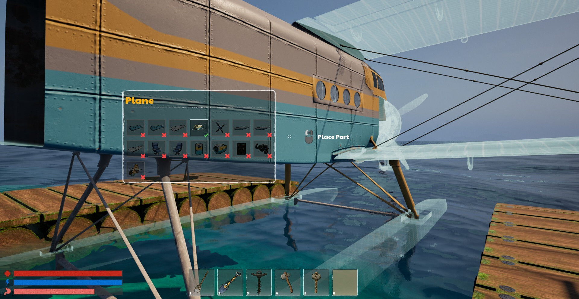 Выживание строится вокруг развитого крафта и базы. Материалы перерабатываются на станциях, руды превращаются в слитки, а компоненты — в инструменты и устройства. Параллельно ведётся восстановление разбившегося самолёта, детали которого собираются и чинятся шаг за шагом, формируя единственный шанс покинуть остров.