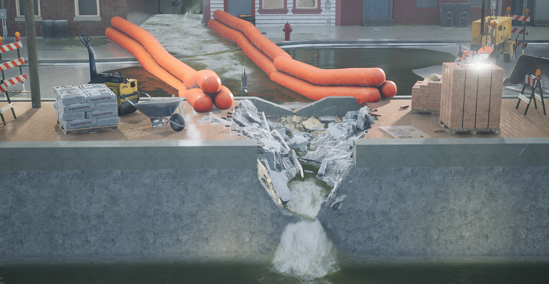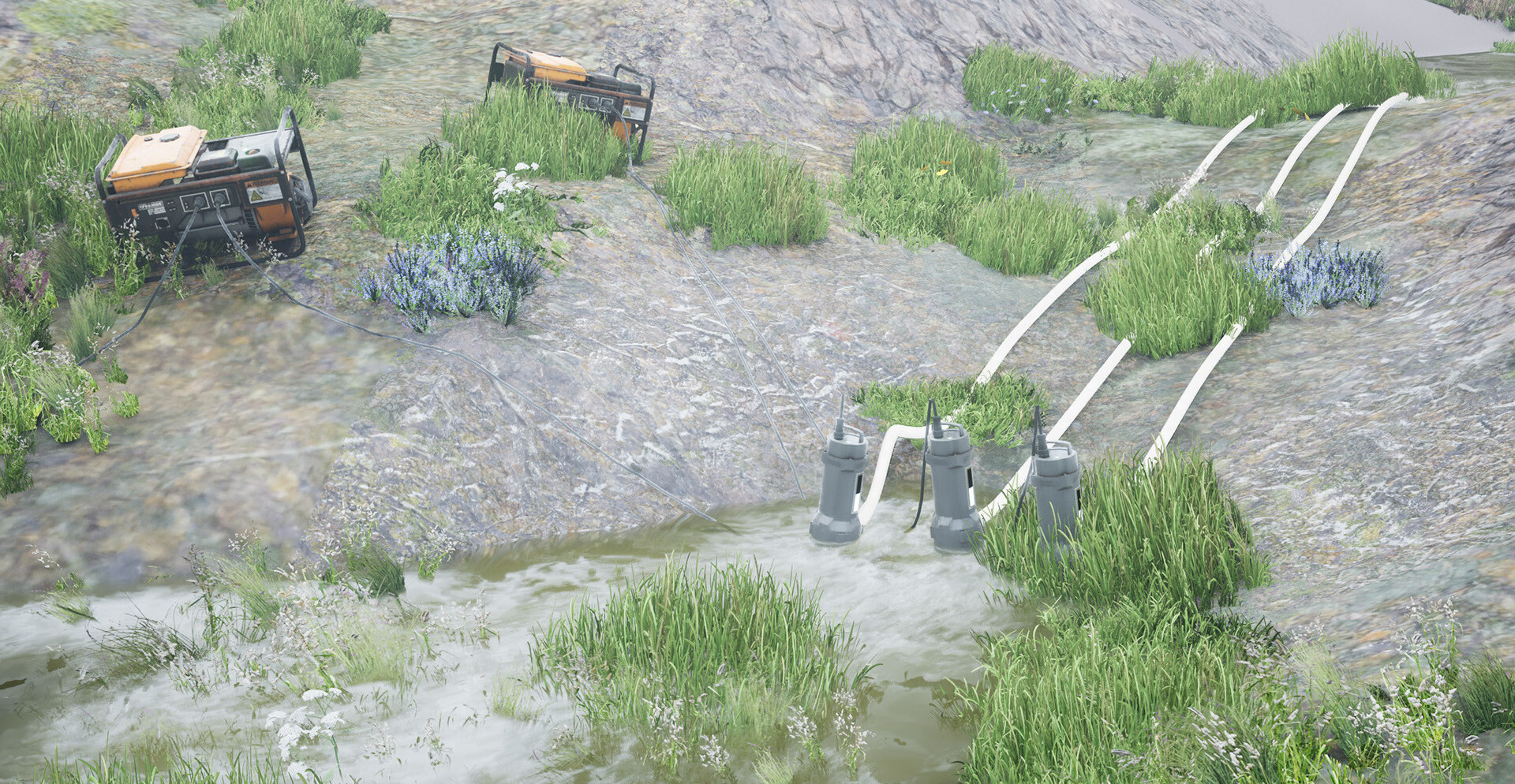 Перед началом задания игрок получает данные о районе: время суток, тип поверхности, расстояние до источников энергии и масштабы затопления. На основе этой информации формируется набор оборудования. Иногда требуется переносная электростанция и несколько насосов, в других случаях достаточно ручных инструментов для расчистки забитых стоков и водоотводных каналов.