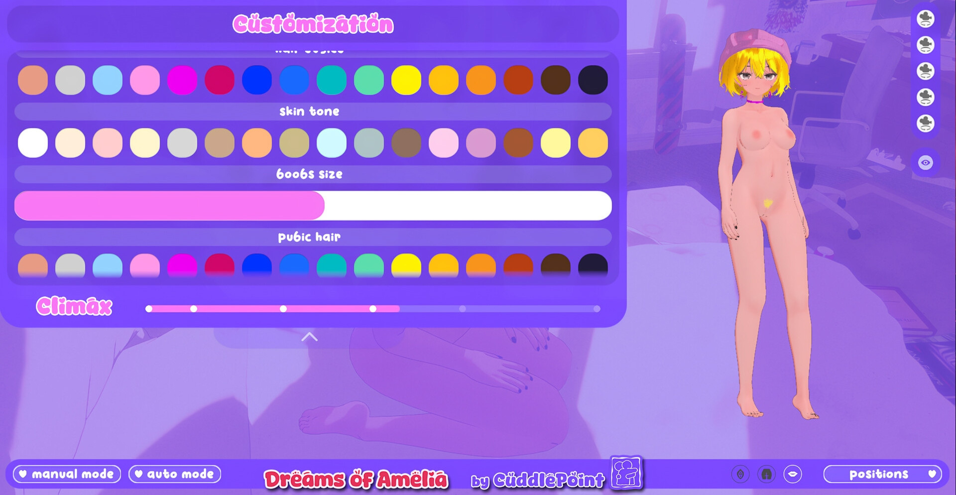 Вас ждут моменты нежности, доверия и притяжения, поданные через красивую визуальную подачу, мягкую музыку и вариативные сцены взаимодействий. Здесь эротика — не самоцель, а язык, с помощью которого герои ищут понимание и теплоту в холодном мире.