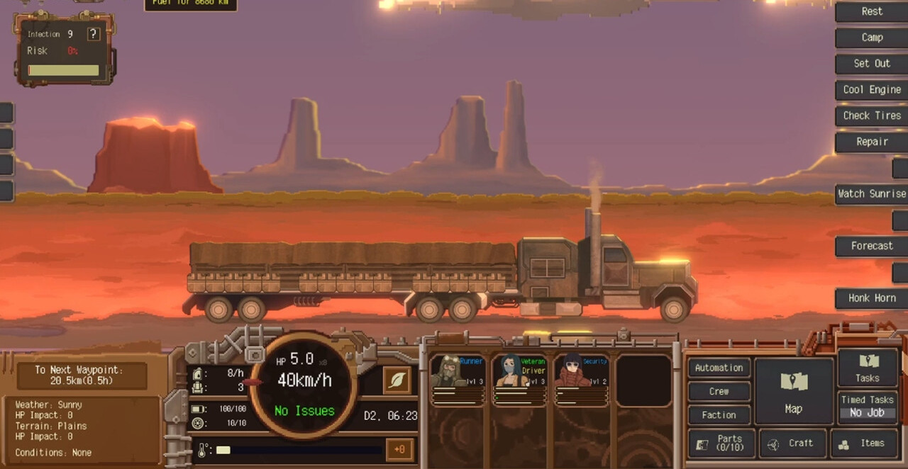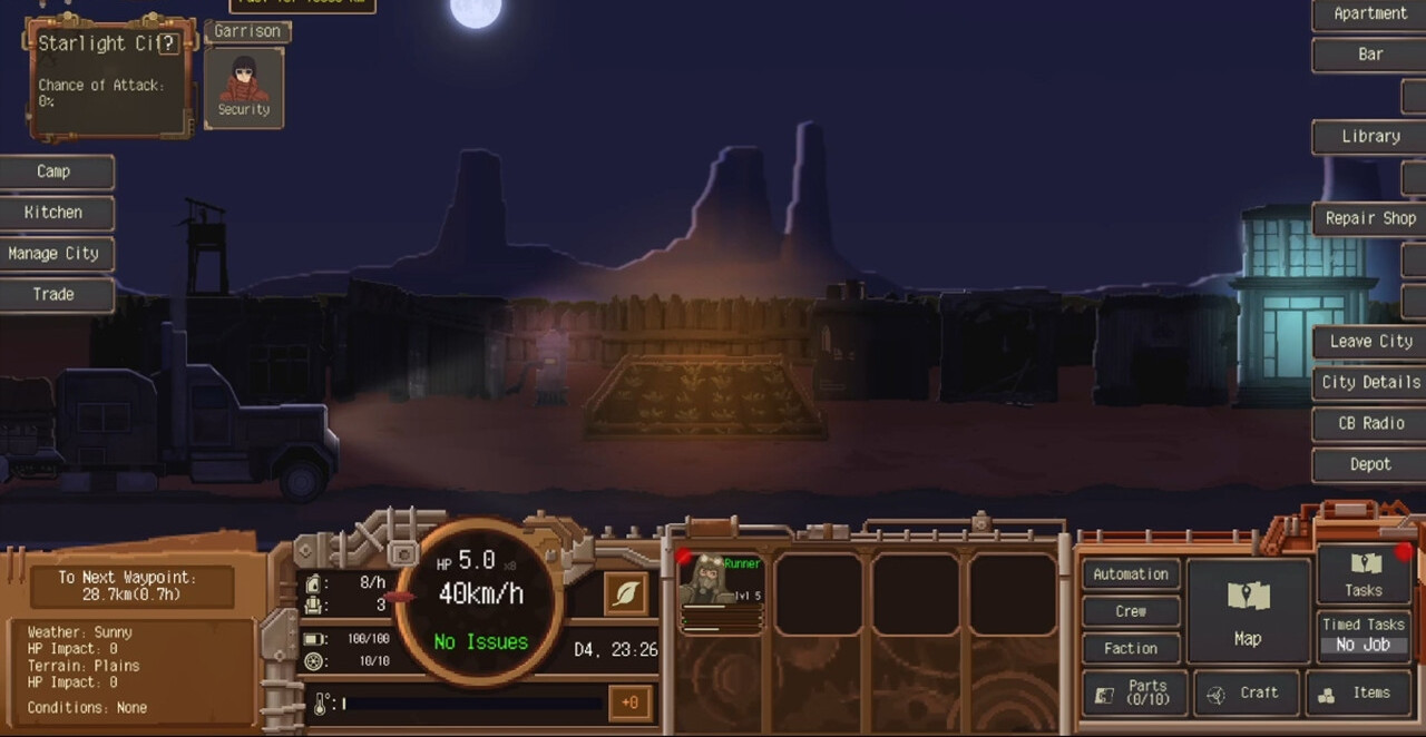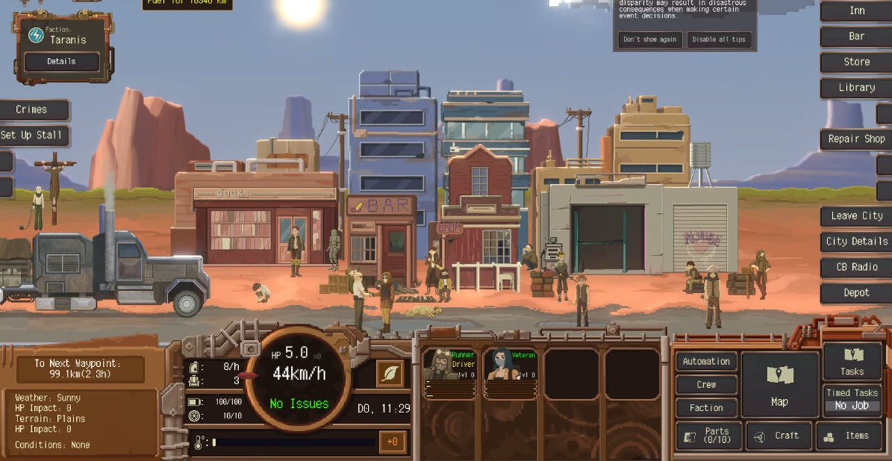 Dustland Delivery – это довольно необычный симулятор бизнеса, приправленный постапокалиптическим миром и элементами выживания. Где вам предстоит исследовать пустошь, чтобы отыскать возможности для прибыли, выполнять задания, развивать империю и конечно же собрать разношерстных авантюристов. Ведь только можно построить столицу Пыльных земель!