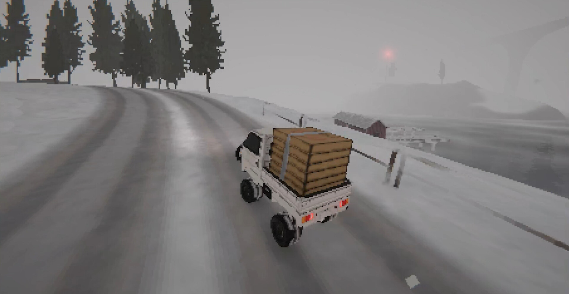 Графика в стиле ретро создаёт атмосферу старых игр. Простое управление помогает сосредоточиться на маршрутах и плавной езде. За рулём вы слушаете музыку и наблюдаете за дождливыми пейзажами. Это не экшен и не триллер — лишь неспешная история о жизни, где ничего странного не происходит.