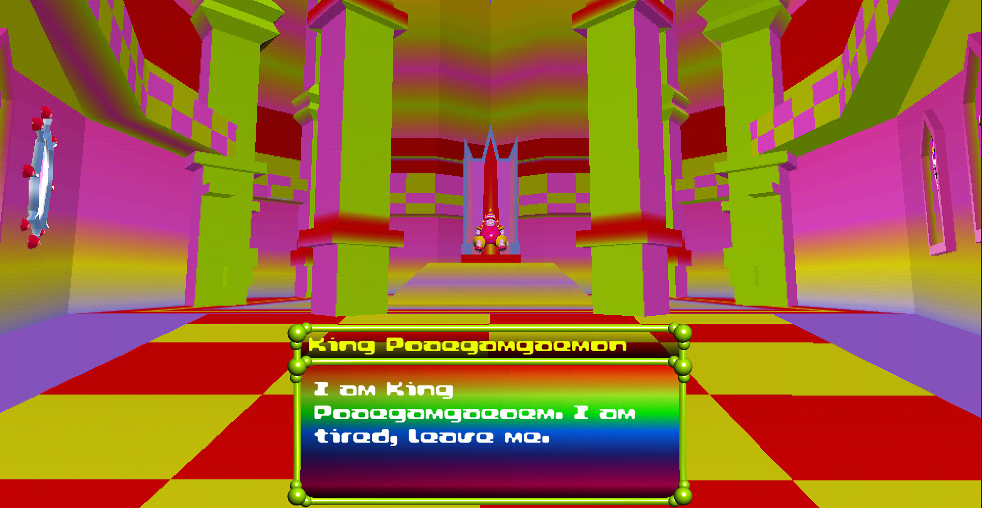 Мир населён странными существами и паразитами, питающимися энтропией. Вы общаетесь с обитателями, сражаетесь с разжиревшими искажениями и обмениваетесь диковинками в экономике подарков. Постепенно раскрываются тайны реальности, где мусор, энергия и движение переплетаются в единый абсурдный, но цельный игровой опыт.