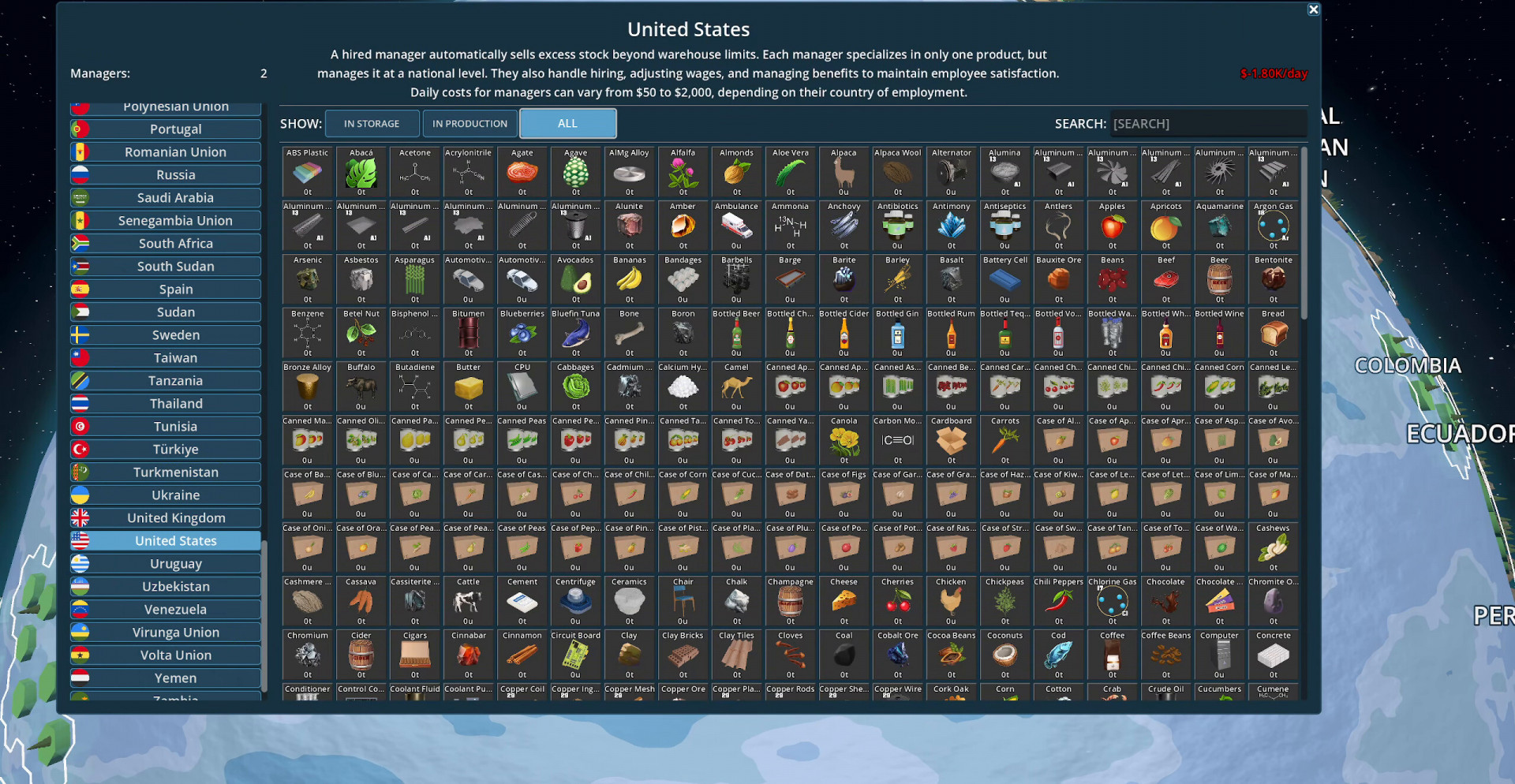 Глобальная карта с разными регионами и ресурсами.