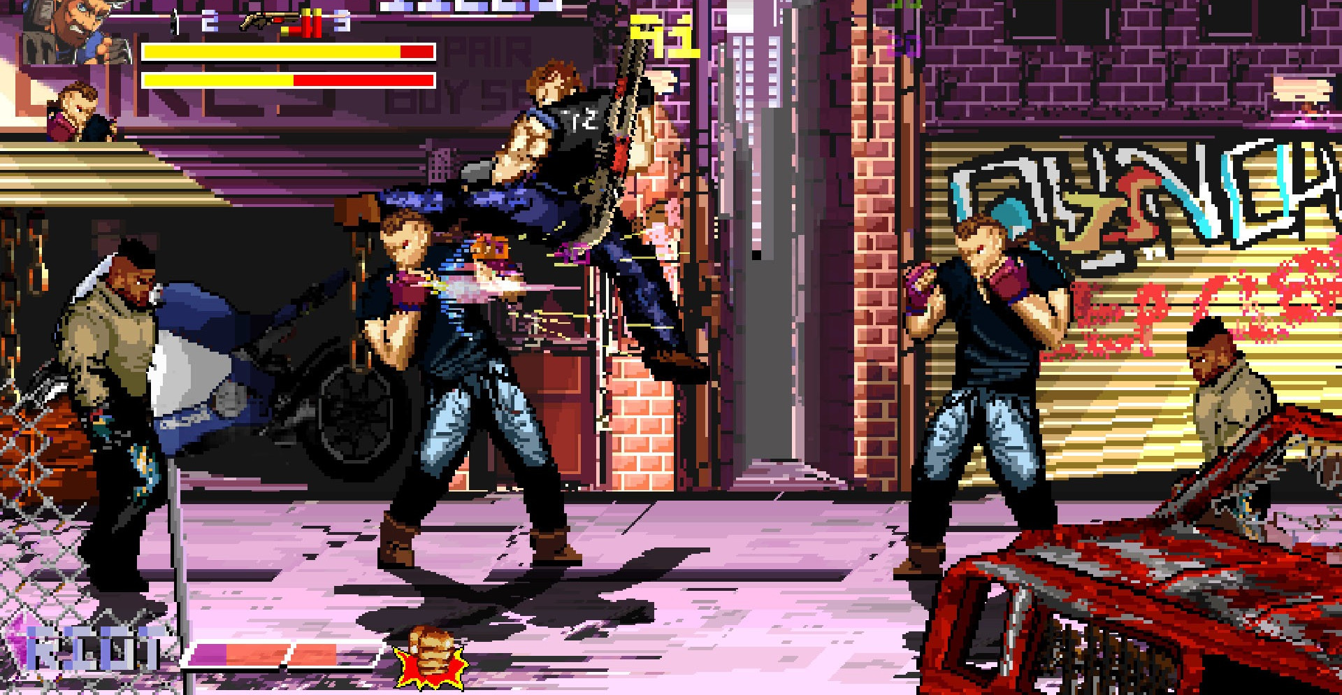 Fallen City Brawl – это классическая аркадная игра по типу «избей всех», которая была вдохновлена на играх 80-х-90-х годов! Здесь тесно переплелись амбиции и месть, а также довольно динамичный пиксельный экшен и конечно же боковая прокрутка.
