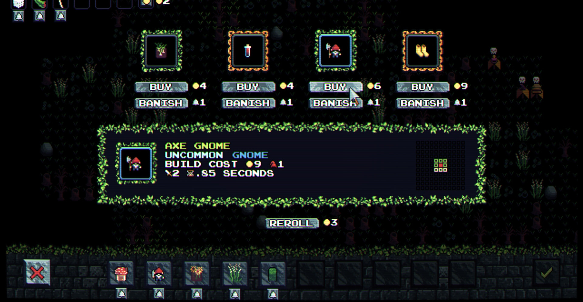 Постоянно развивайте свою экономику, но не забывайте об обороне, ведь с каждым уровнем враги становятся сильнее, а ресурсы — ограниченнее. Множество биомов и типы гномов добавляют игре стратегической глубины.