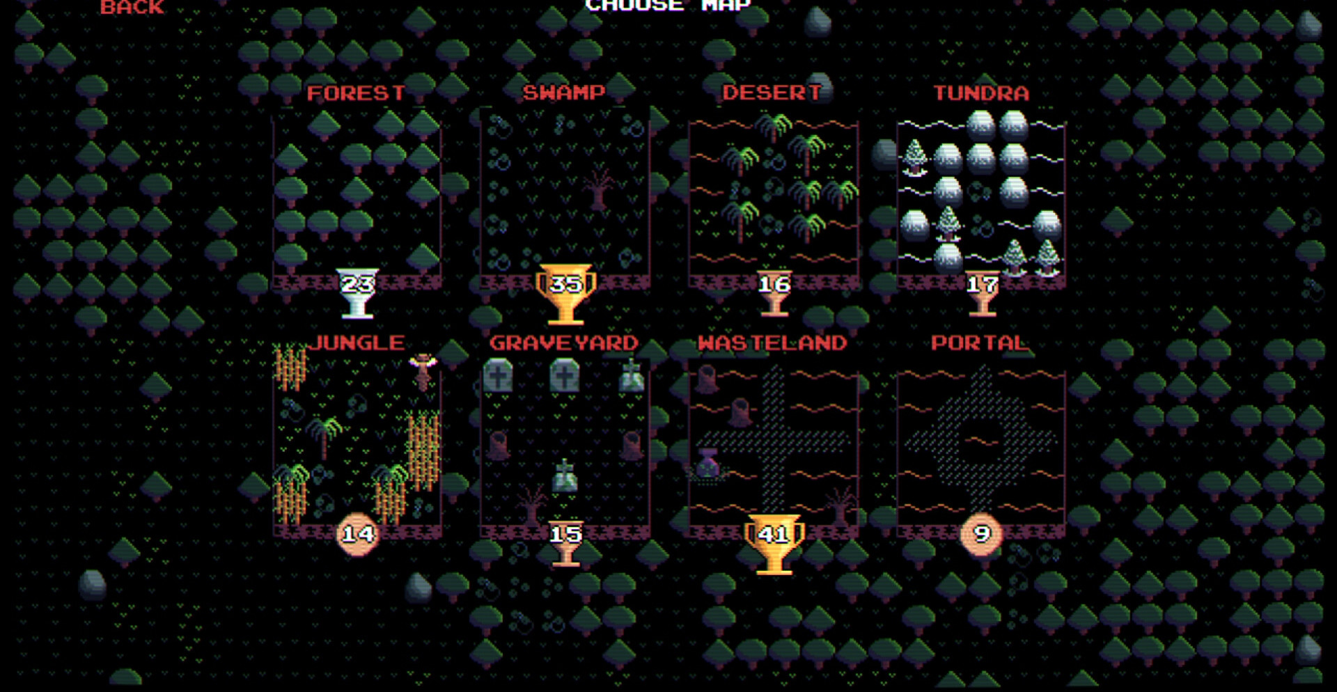 Процедурно генерируемые карты с различными врагами и ресурсами.