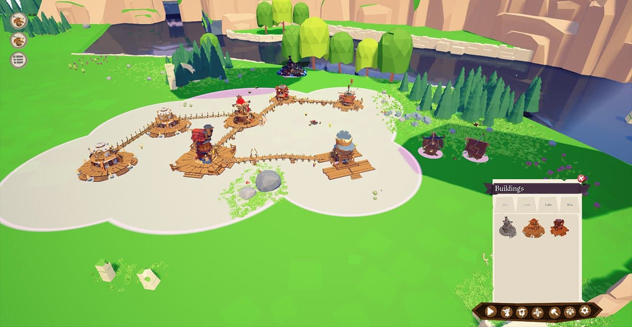 - Свободное ото всех рамок строительство – Гоблины не особо любят порядок, поэтому они ни за что не станут выстраивать свои здания в ряд. Они настоящие бунтари по натуре, и в креативности им не откажешь. Именно поэтому здания можно возводить абсолютно в любом месте, лишь соединяя их дорожками и мостами, чтобы ваши подопечные могли передвигаться по ним.