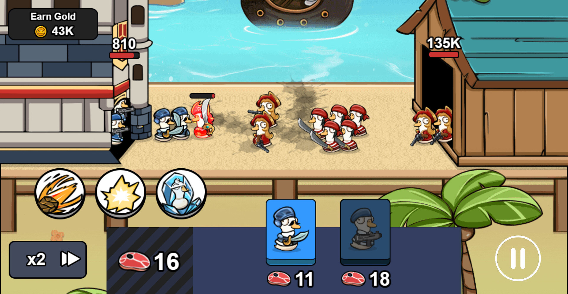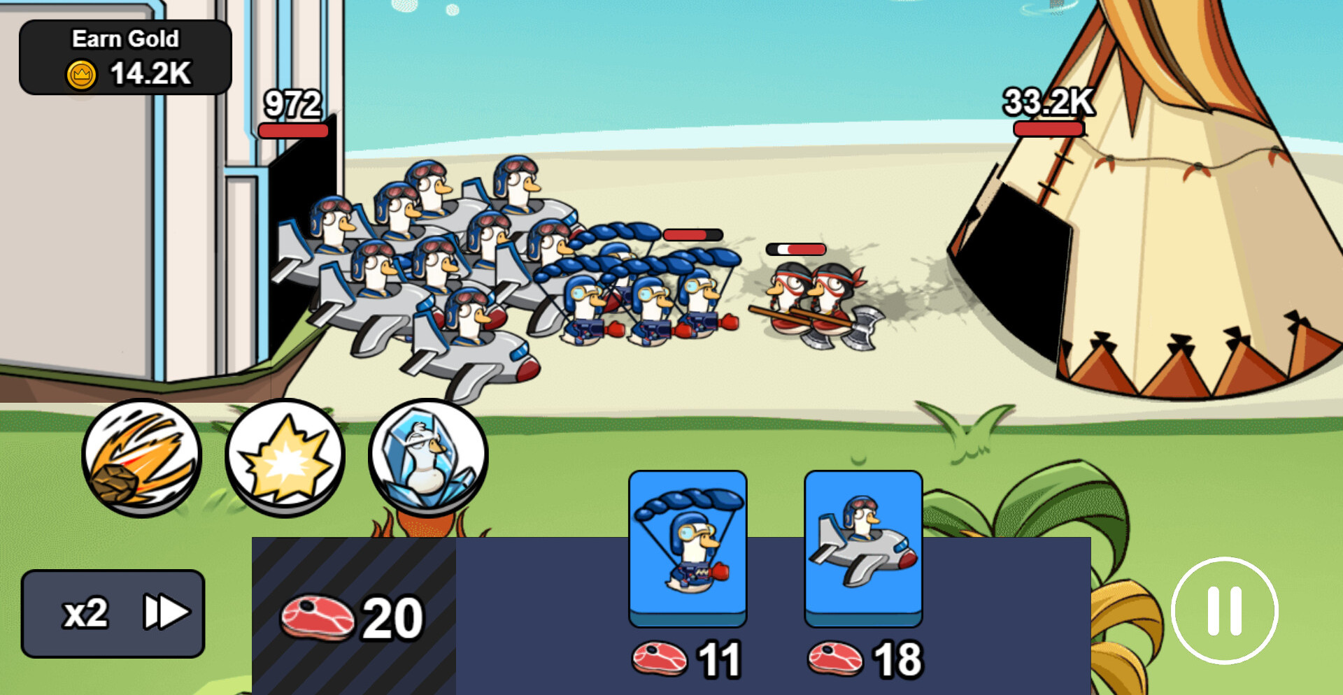 Goose Evolution — это лёгкая, но масштабная tower defense-стратегия, в которой гуси проходят путь развития от Каменного века до Космической эры, сражаясь с армиями других гусей. Вы управляете эволюцией стаи, открываете новые эпохи, усиливаете армию и адаптируетесь к меняющимся условиям поля боя. Параллельные миры добавляют десятки уникальных цивилизаций, превращая каждый этап в отдельную стратегическую кампанию.