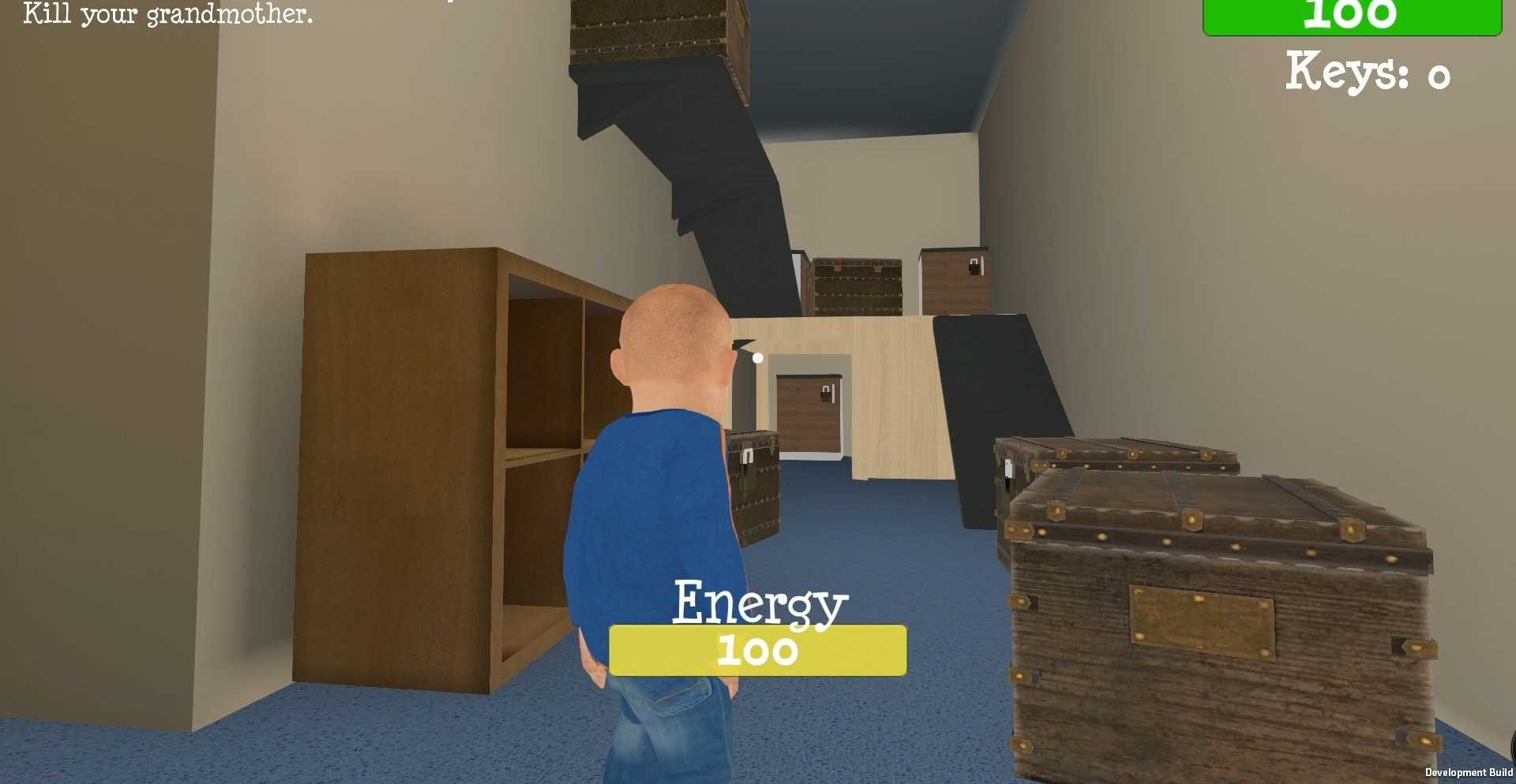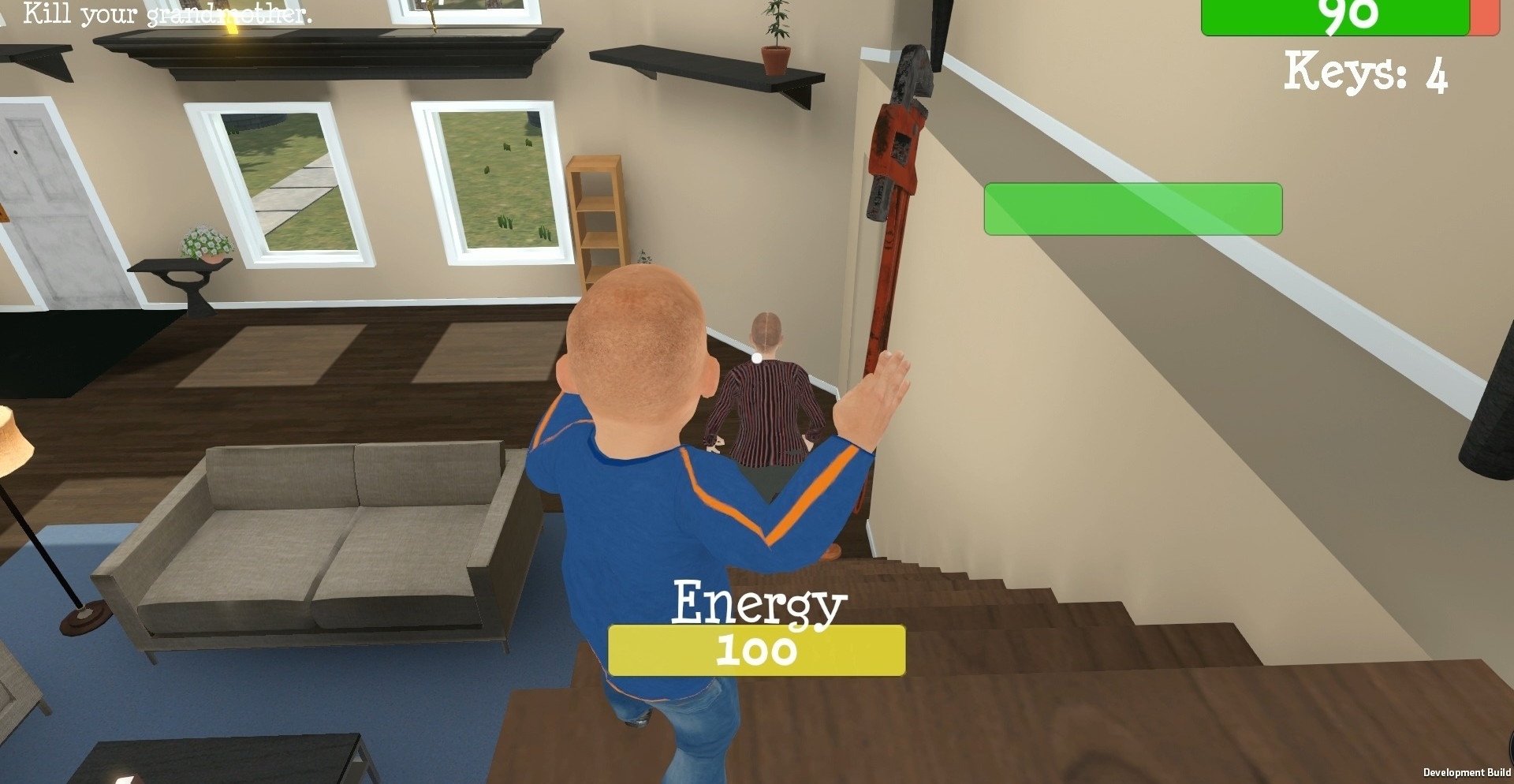 Бабушке придется активно исследовать дом. Нужно отыскать предметы, которые она сможет применить в сражениях с внуком. У бабушки множество задач.