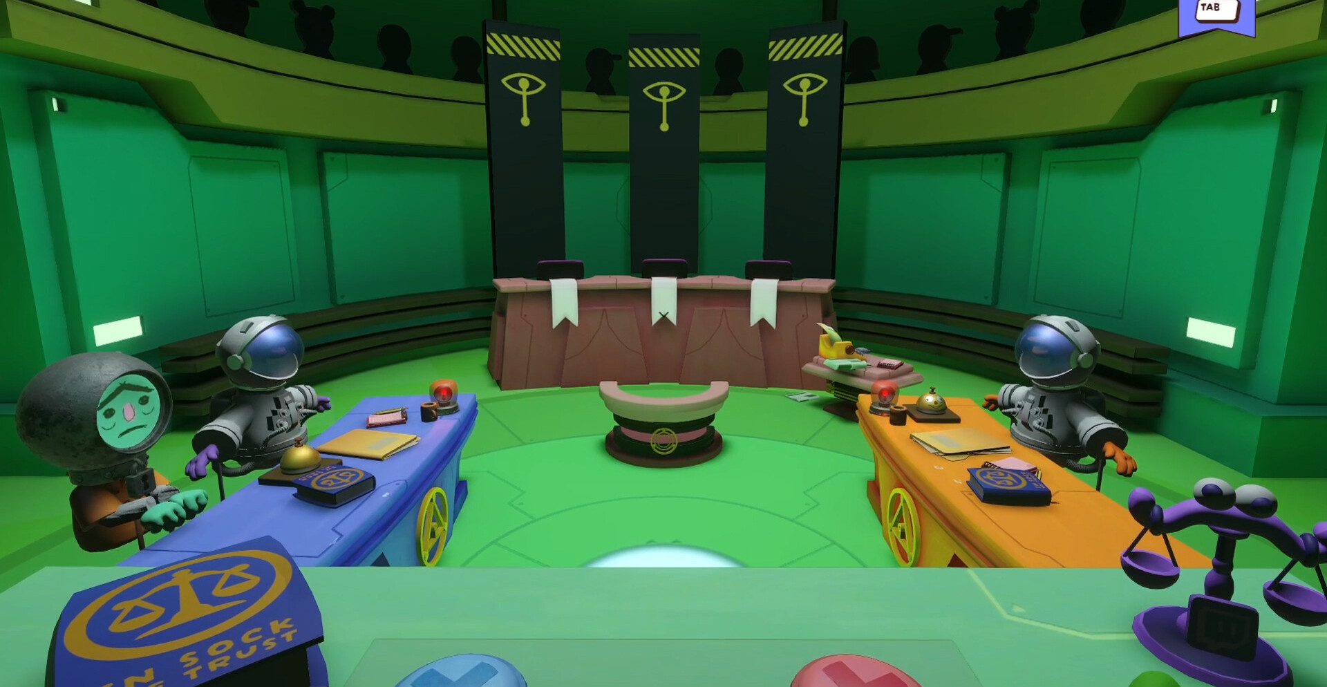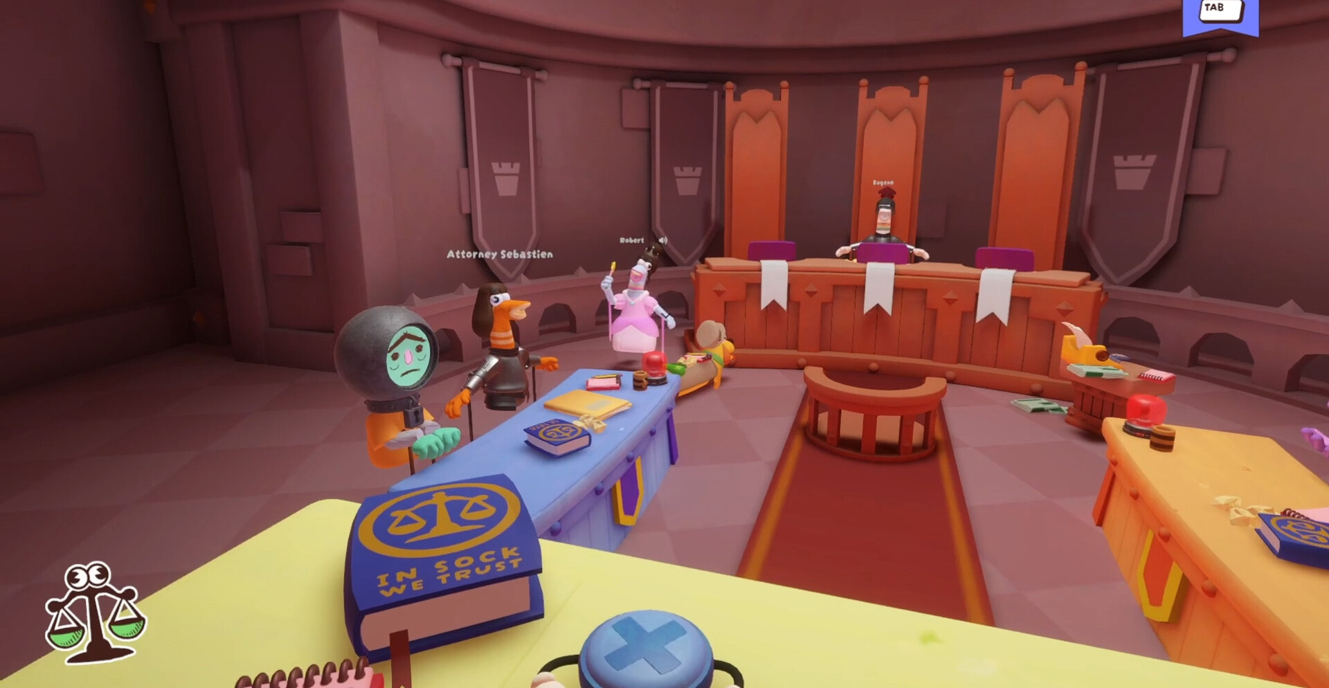 Guilty as Sock — это соревновательная настольная игра в формате цифрового зала суда. Игроки делятся на роли с уникальными задачами: обвинять, защищать, выносить решения или вносить хаос с помощью дополнительных действий.