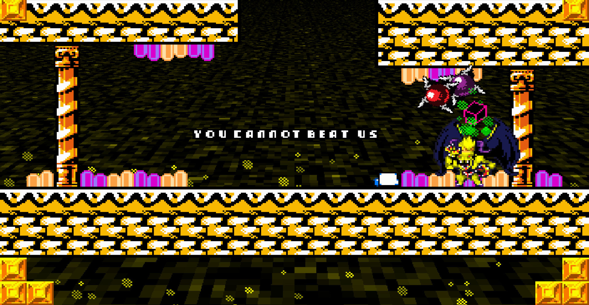 Во время продвижения по уровням предстоит сталкиваться с демоническими противниками, каждый из которых предлагает собственное испытание. Победа может означать уничтожение врага или иной исход, позволяющий изменить расстановку сил. С каждым новым этапом путешествие становится всё более абсурдным и напряжённым, превращая обычный платформер в историю о выборе между разрушением и контролем над собой.