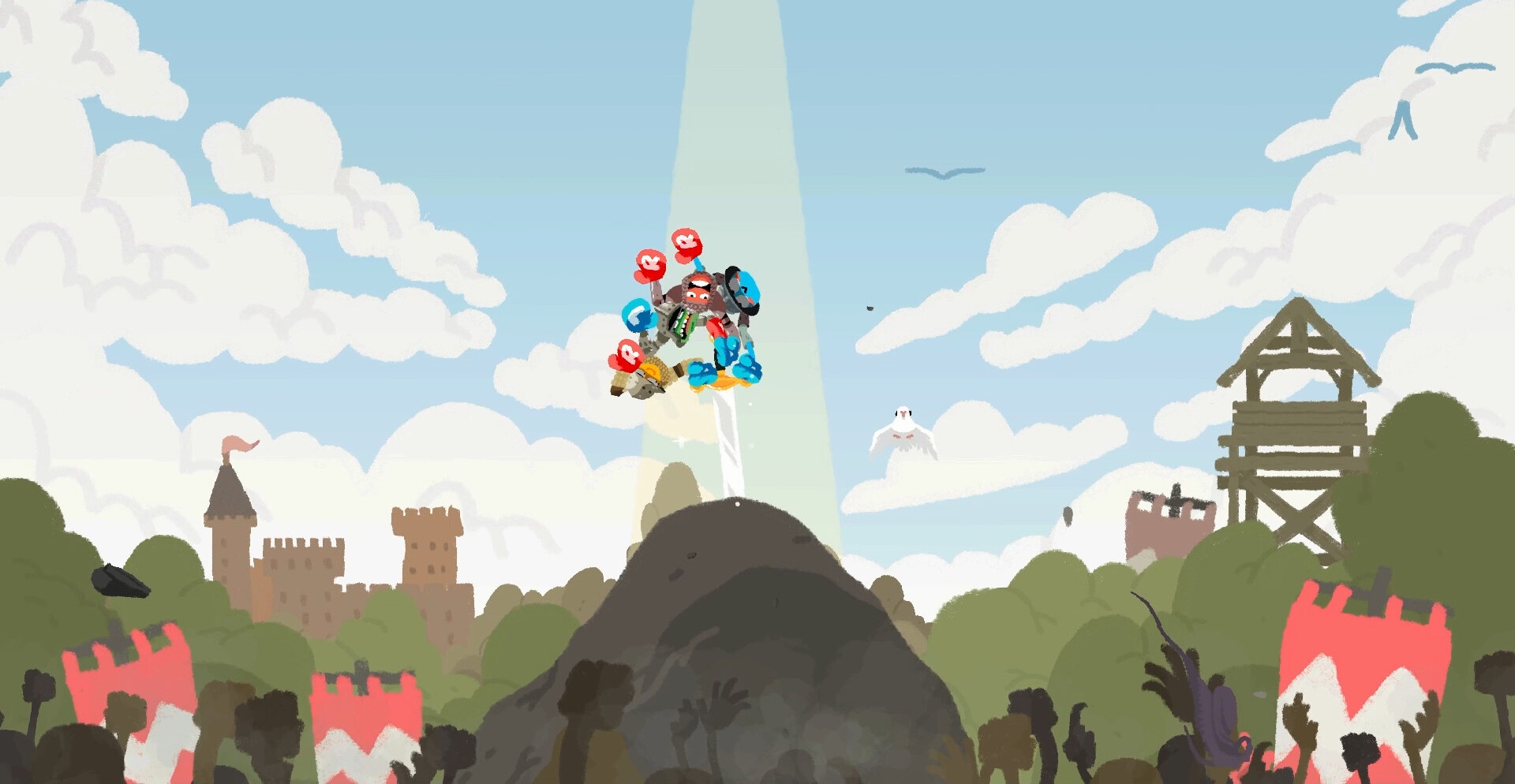 Heave Ho 2 — это сумасшедшая кооперативная аркада, где игроки должны перемещаться по уровням, цепляясь руками друг за друга и за различные объекты. Единственный способ двигаться вперёд — раскачиваться, перелетать через пропасти и строить живые цепочки из товарищей. Ошибка одного может уронить всех, поэтому успех зависит от координации и доверия. Иногда приходится держать друга за руку, а иногда — за голову, чтобы вся команда добралась до платформы и не сорвалась вниз в самый последний момент.