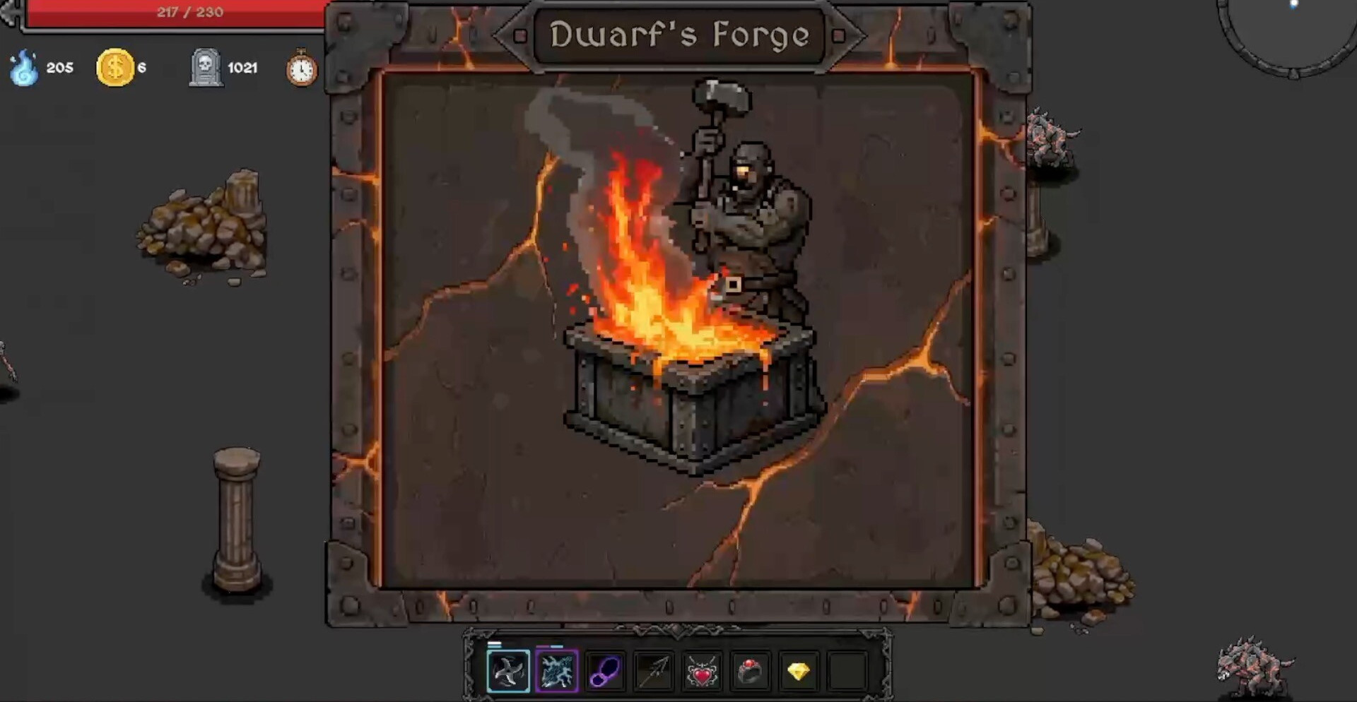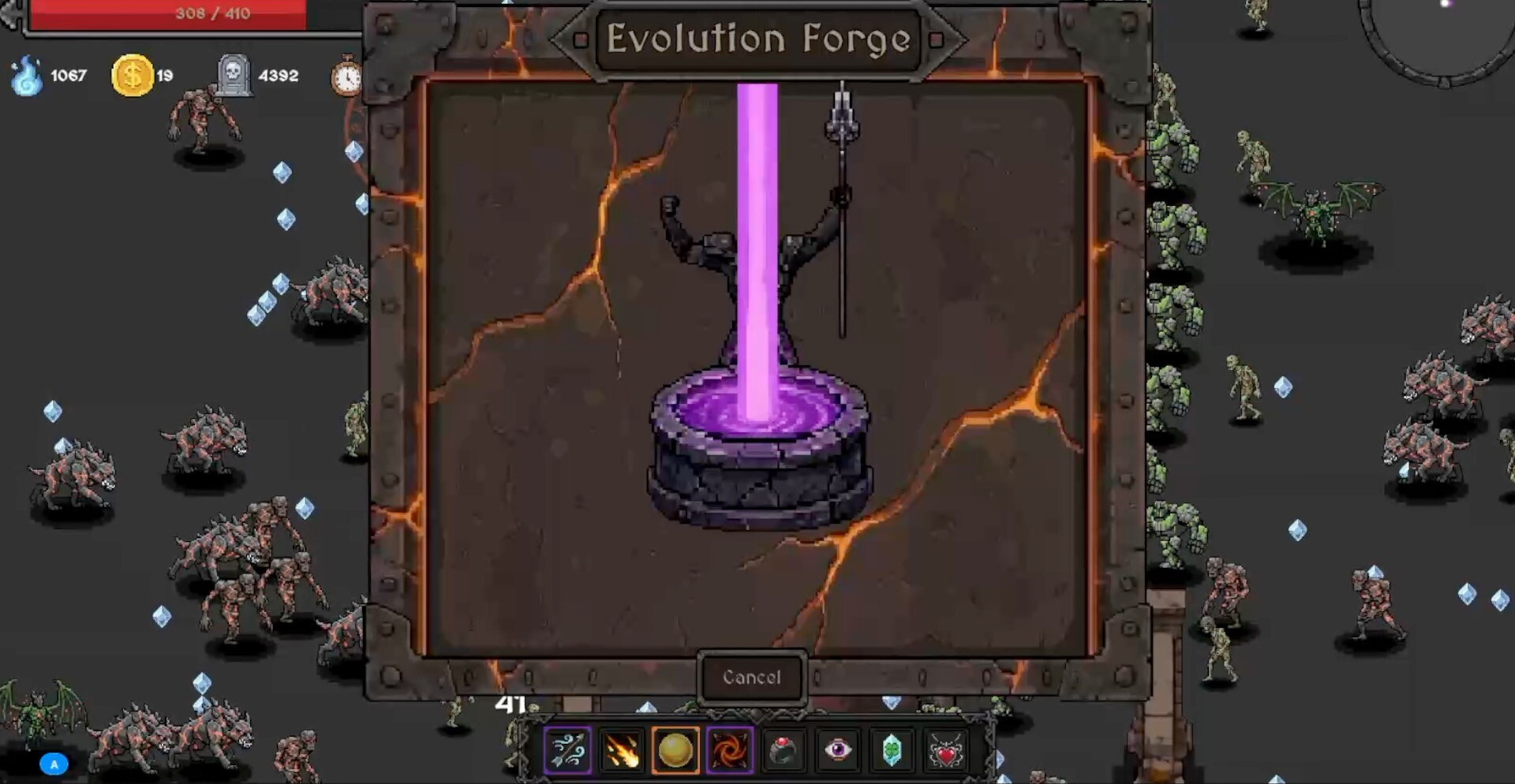 Hell Forge — это ретро-роглайт-сурвайвл, где каждое решение превращается в ставку на собственное выживание. Игрок оказывается среди бесконечных орд демонов, собирая души павших существ ради одной цели — добраться до Адской Кузницы. Именно там решается судьба забега: рискнуть всем ради легендарного оружия или потерять добычу и быть раздавленным новой волной монстров, которая уже движется из темноты.