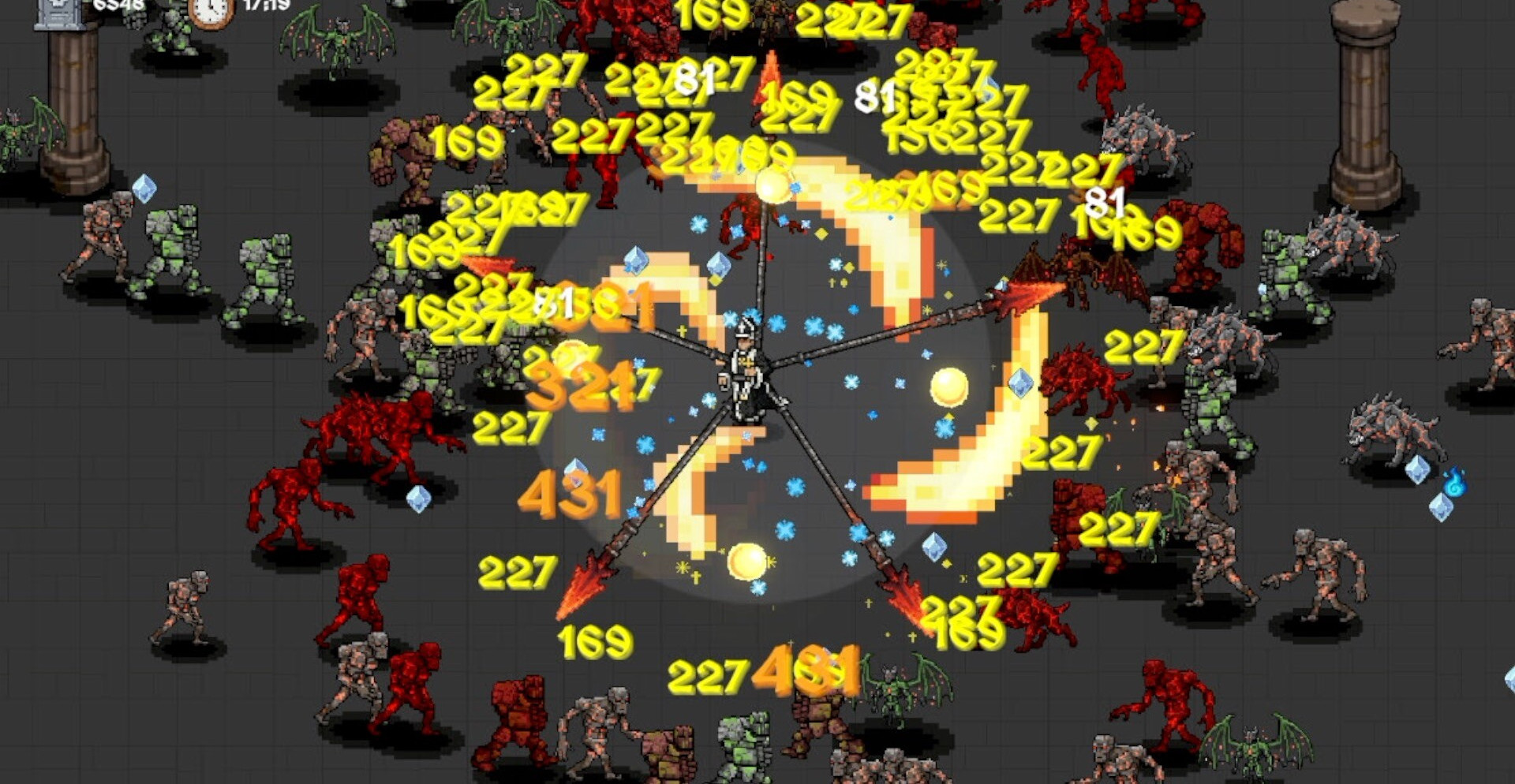 По мере роста силы открываются разрушительные формы оружия. Простые инструменты убийства постепенно превращаются в хаотические вихри урона, очищающие пространство вокруг героя. Но каждое улучшение зависит от удачи и ресурсов, добытых в бою, поэтому каждый новый забег становится экспериментом с тактикой, где ошибка может мгновенно уничтожить весь прогресс.