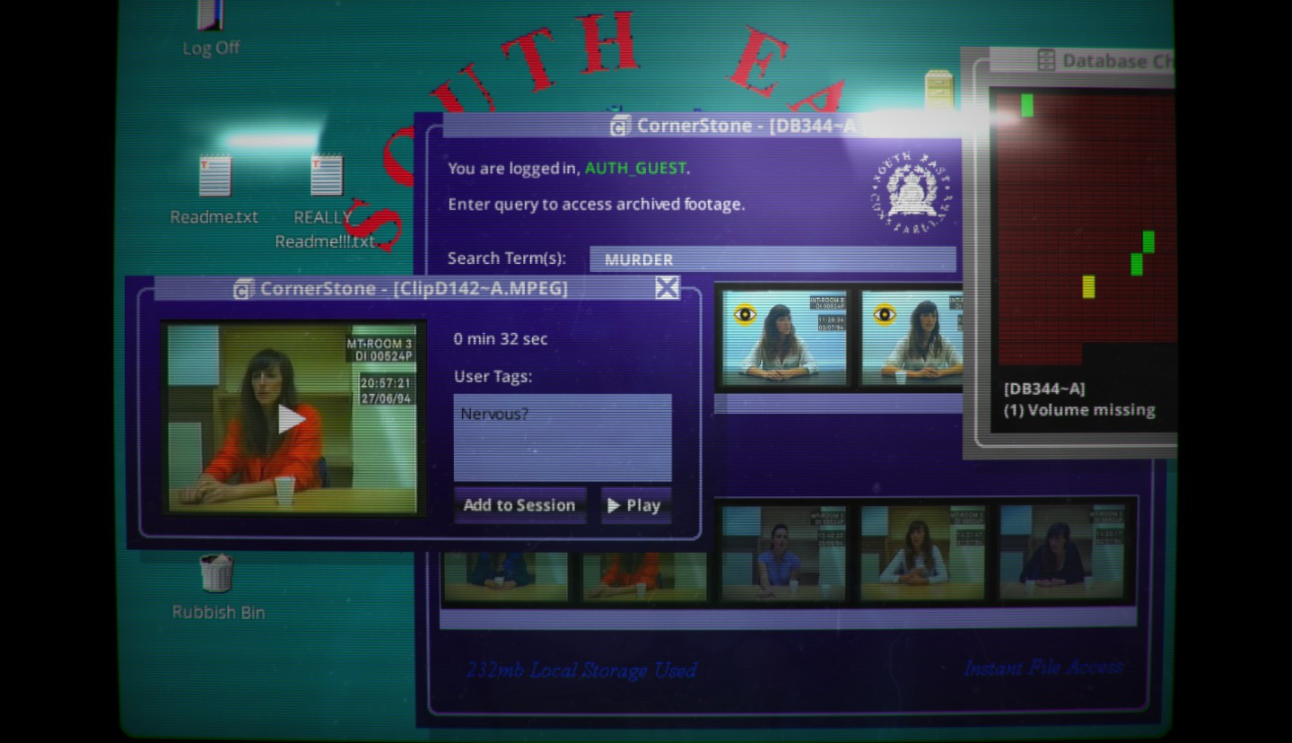 Her Story – это невероятная игра-квест, которая основана на интерактивном кино и предоставляет возможность поиграть за самого настоящего детектива, а также окунуться в довольно интригующие события. Просмотрите видеозаписи с допросами двух девушек и попробуйте разобраться во всем этом!