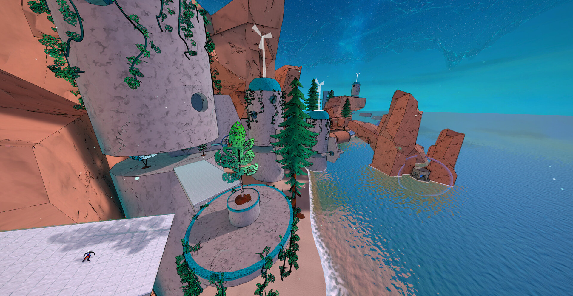 Продвижение строится вокруг катания по рампам, прыжков и точного выбора момента. Двойные прыжки и банни-хопы становятся инструментами сохранения скорости, а ошибки наказываются потерей ритма. Обучение ненавязчиво вводит в механику, позволяя постепенно освоить движение и превратить его в осознанный навык, а не хаотичный набор действий.