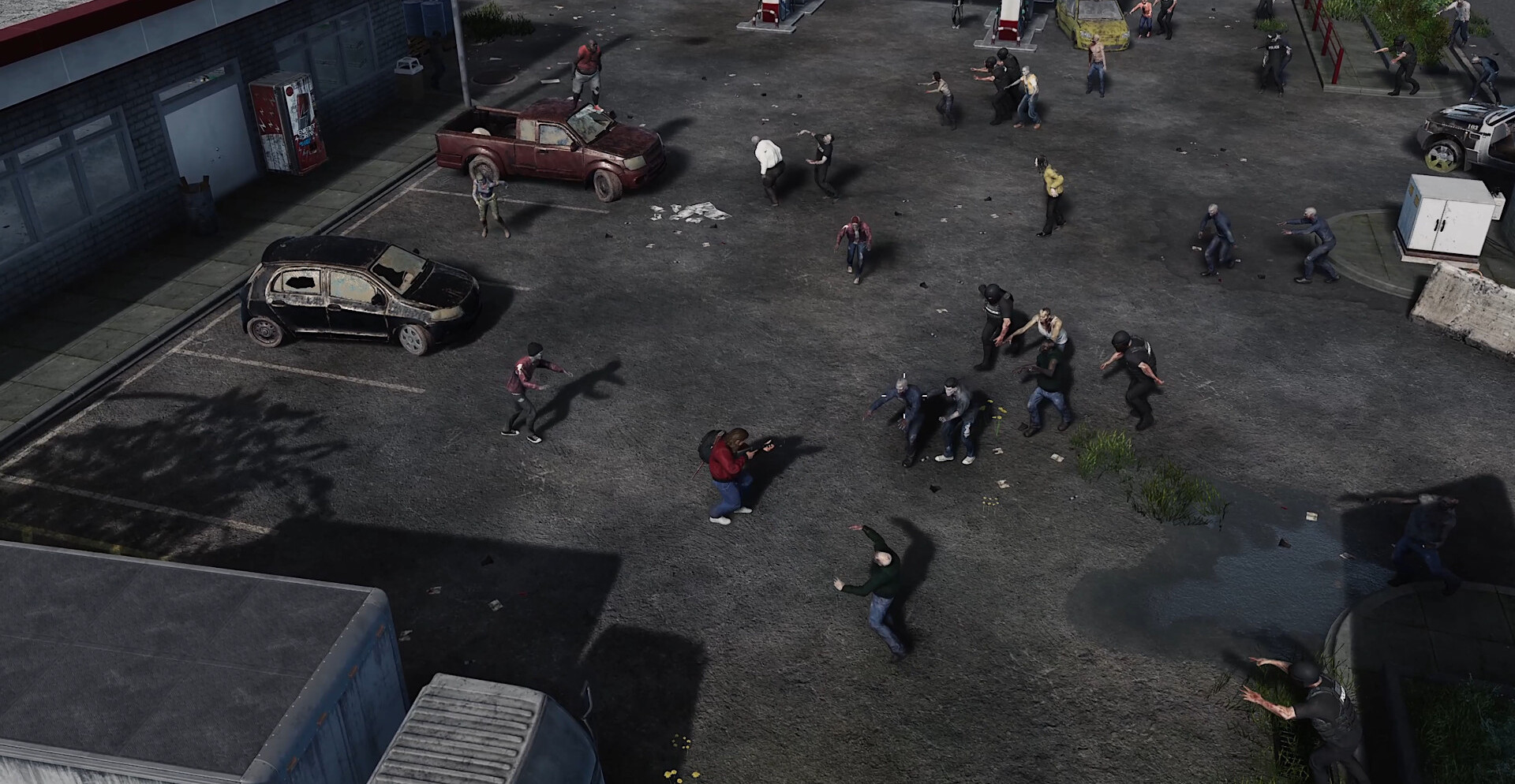 Используйте транспорт, оружие и дома для выживания.