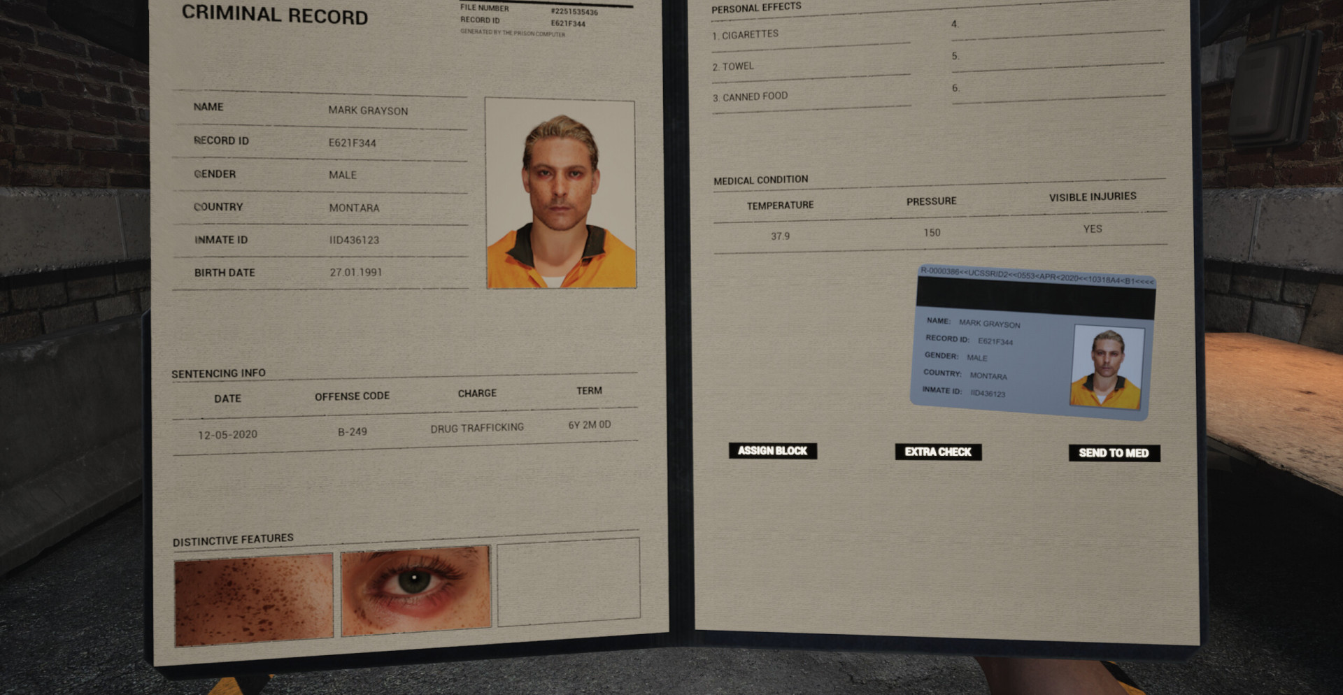 Рабочий процесс строится вокруг тщательной проверки каждого заключённого. Игрок осматривает тело, проверяет личные вещи и анализирует документы, чтобы убедиться в отсутствии угроз. Некоторые заключённые могут пытаться скрывать запрещённые предметы или вести себя подозрительно, поэтому важно обращать внимание на любые детали и несоответствия.
