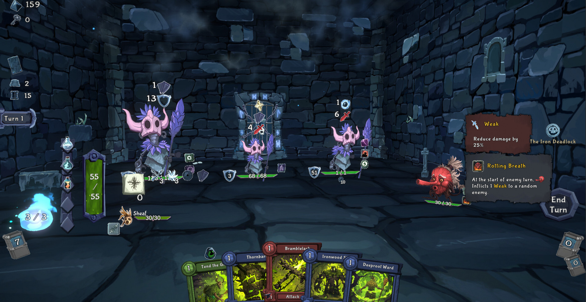 Бои строятся вокруг колоды, которая постоянно меняется по ходу прохождения. Сотни карт и эффектов позволяют собирать комбинации, усиливать способности и находить неожиданные синергии. Враги ведут себя по-разному и требуют менять подход, поэтому одна стратегия быстро перестаёт работать, заставляя искать новые решения прямо во время боя.