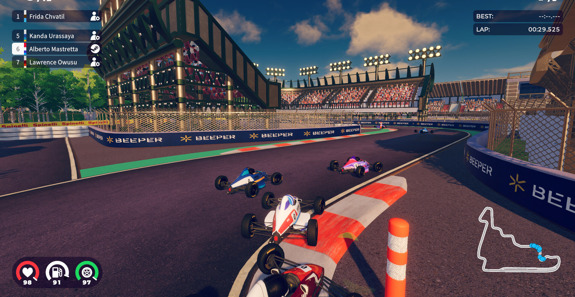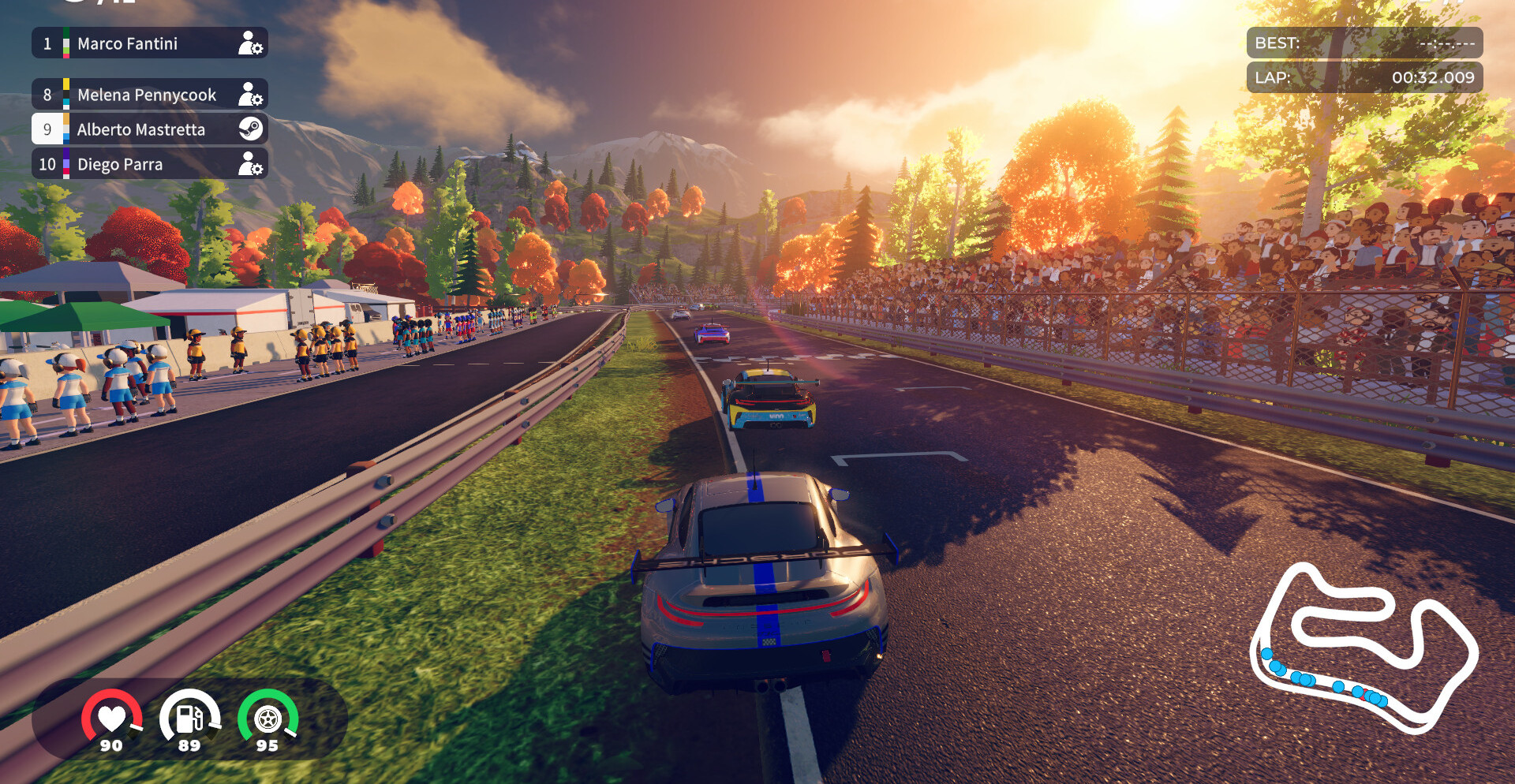 Соревнуйтесь на стилизованных трассах, вдохновлённых легендарными аренами автоспорта. От Мехико до Имолы — каждая гонка предлагает уникальные испытания и возможность проявить себя. Грамотно распределяйте ресурсы, выбирайте стратегии и расширяйте свою коллекцию машин. Это не просто аркада — это гонка за наследием.