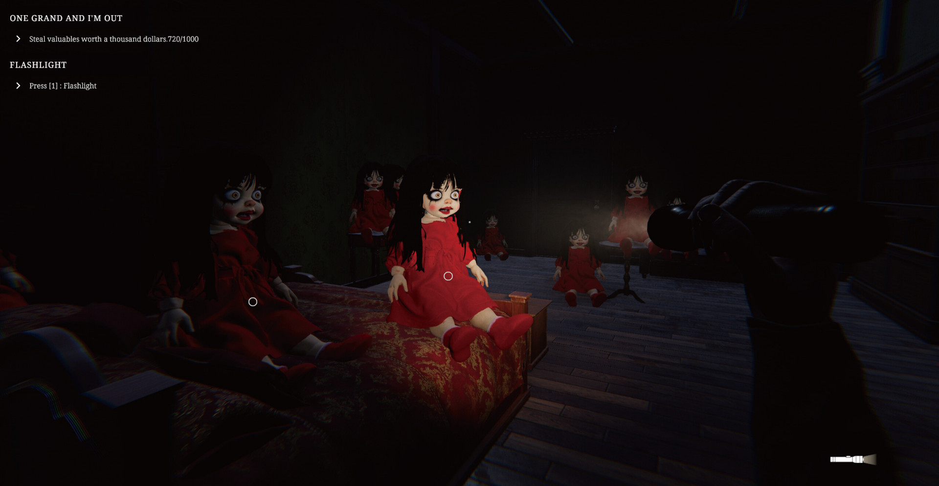 Исследование дома быстро превращается в игру на выживание. Пространства замкнуты, пути перекрываются, а головоломки требуют внимательности и логики. Особняк постепенно раскрывает свою истинную природу через детали окружения, звуки и странные события. Игрок вынужден подчиняться правилам этого места, так как любая попытка действовать напрямую приводит к опасности и преследованию.