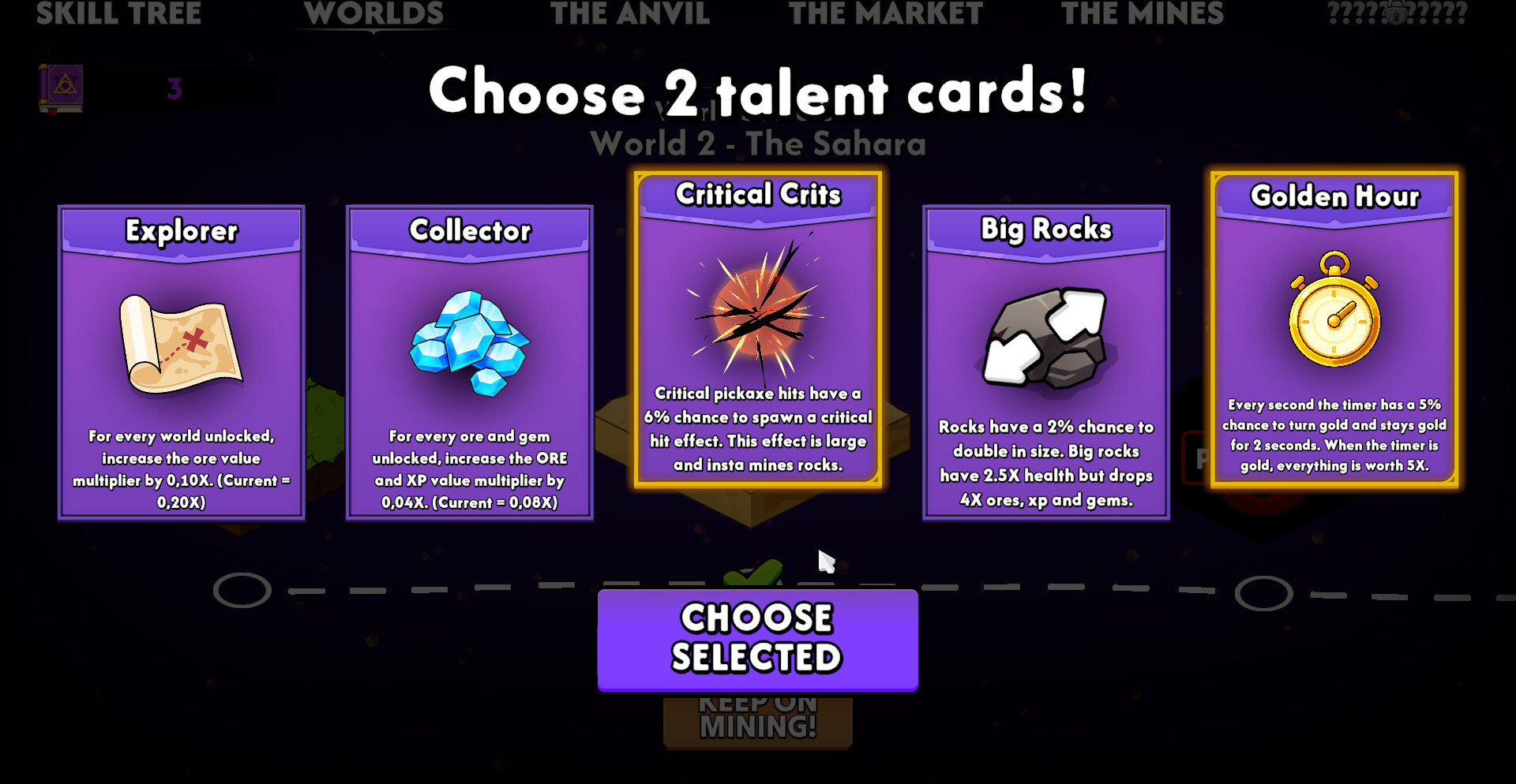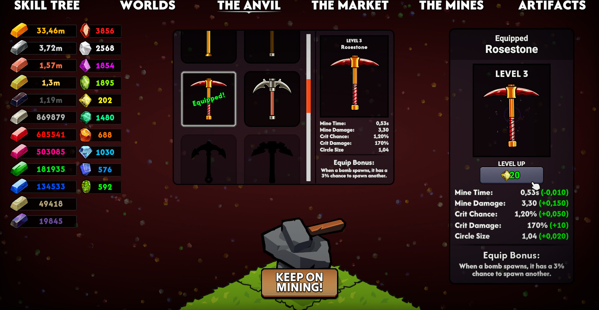 Keep on Mining! - Worlds — это инкрементальная игра, в которой простая добыча камня постепенно превращается в масштабный процесс разрушения. Сначала действия выглядят медленно и ограниченно, но по мере развития всё ускоряется, создавая ощущение постоянного роста. Улучшения накладываются друг на друга, усиливая эффект и позволяя достигать всё более мощных результатов.