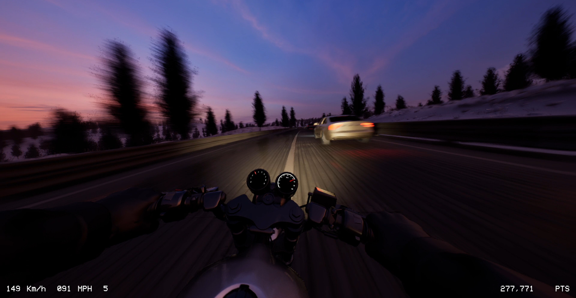 Заезды строятся на постоянном лавировании между автомобилями, движущимися с разной скоростью. Дорога формирует узкие окна для проезда, требующие точных движений рулём и контроля ускорения. Чем выше скорость, тем меньше времени на решение, а любая ошибка мгновенно завершает попытку и обрывает заезд.